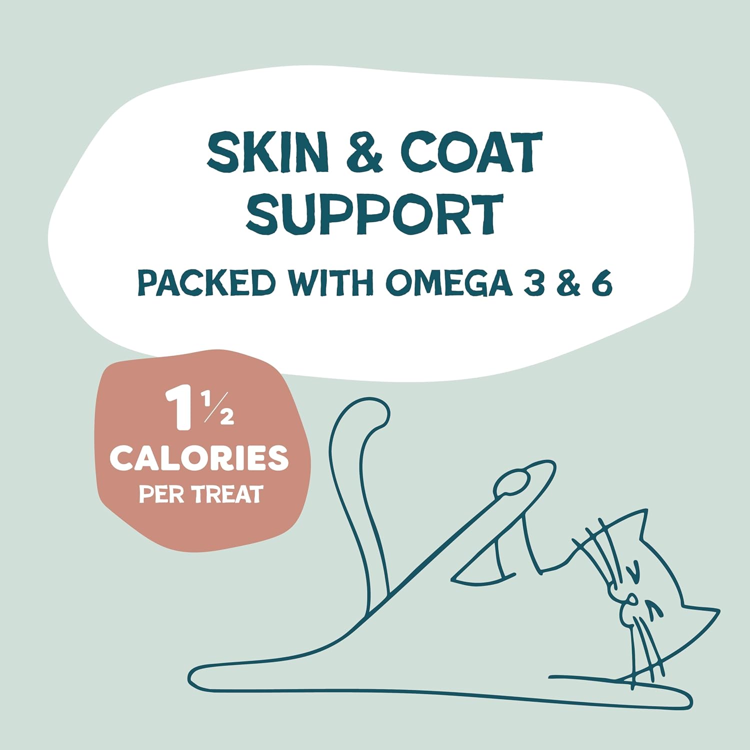 - Cat Treats for Skin & Coat Support: Your cat's skin & coat routine just upped its game. With a few of these delicious crunchy, star-shaped bites, they'll be doing the cat walk with perfection, from head to toe. Made with upcycled sweet potatoes, with added fish oils for that extra skin & coat support, your cat will be lookin' good and feelin' good. Includes three 2.5 oz bags.