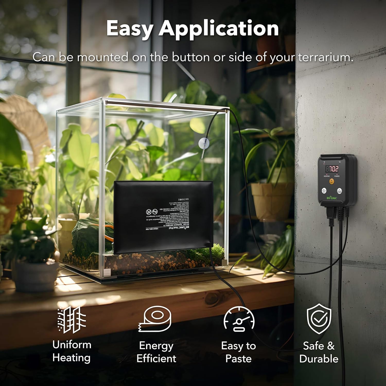 BN-LINK Durable Reptile Heating Pad 8" X 12" with Digital Thermostat Under Tank Heater Terrarium Warmer Combo Set for Turtles, Lizards, Frogs, and Other Reptiles