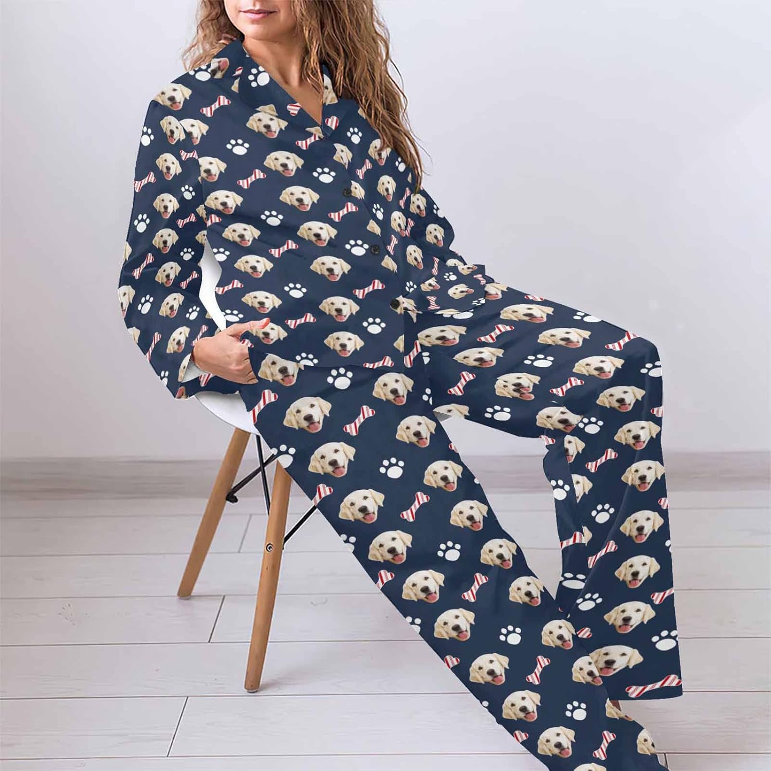 MyPupSocks Custom Face Pajamas for Women Set, Personalized Photo Long Sleepwear XS-XXL