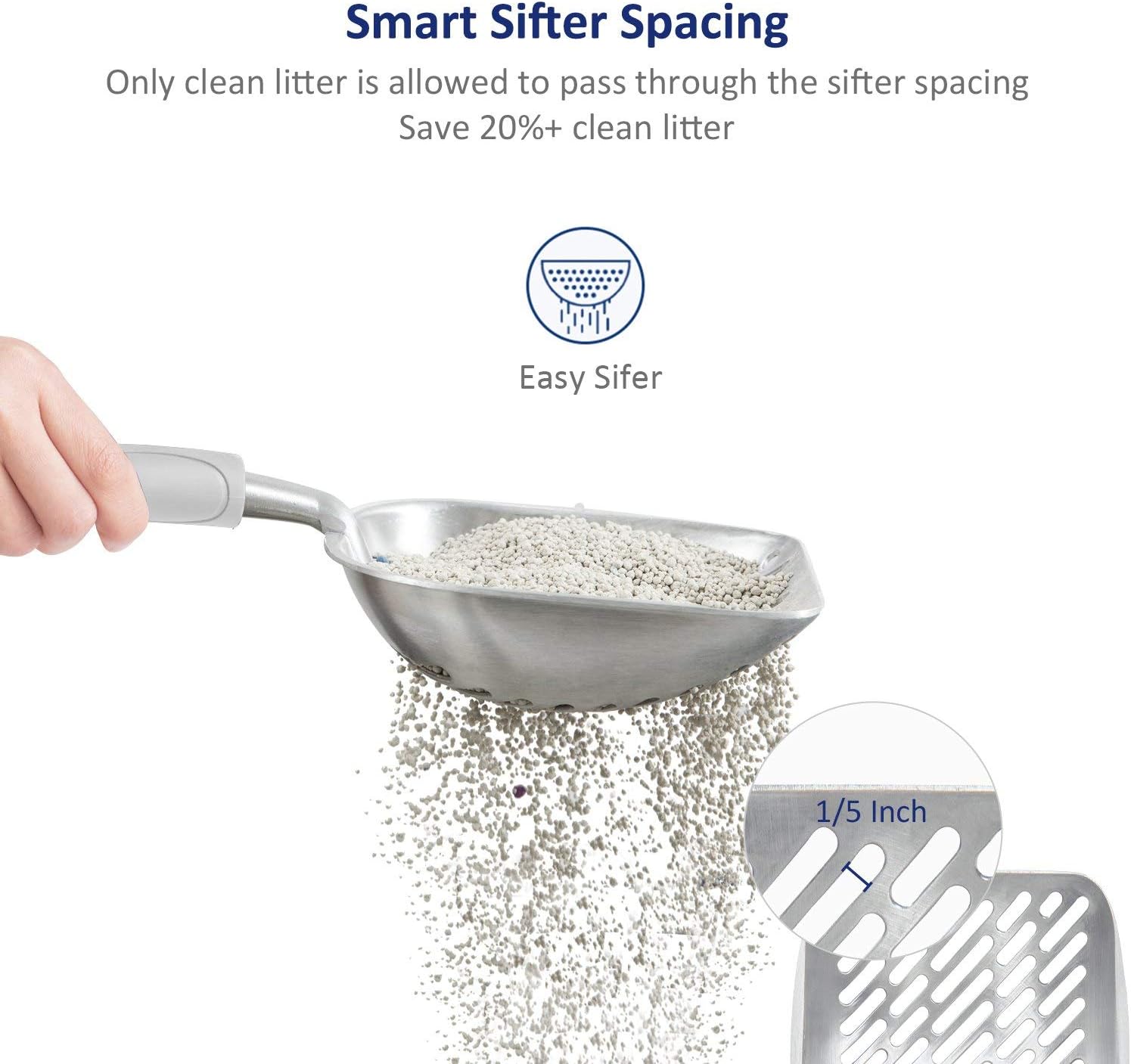- [Deep Shovel Sifter Design]: WePet deep shovel is an upgrade version, it’s built to make poop scooping so easy, the smooth shape is designed for cover all the corners of your cat’s litter box and reach deeply for each scoop.