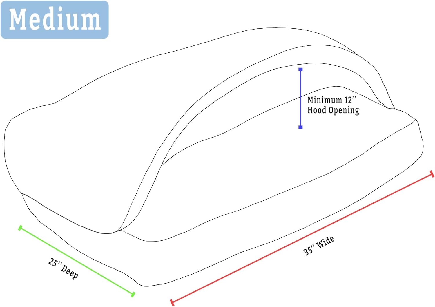 - Sizing: This dog bed measures 25" deep by 35" wide with a 4" sidewall, and about 8" total height with the hood, perfect for medium sized dogs. Includes a removable plastic tube to keep the hood open