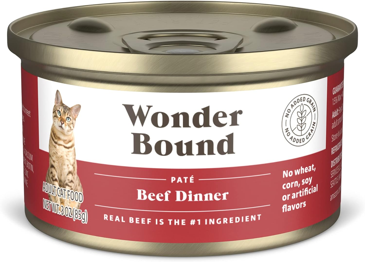 Amazon Brand - Wonder Bound Wet Cat Food, Paté, No Added Grain, 3 oz cans, Pack of 24 (Beef)