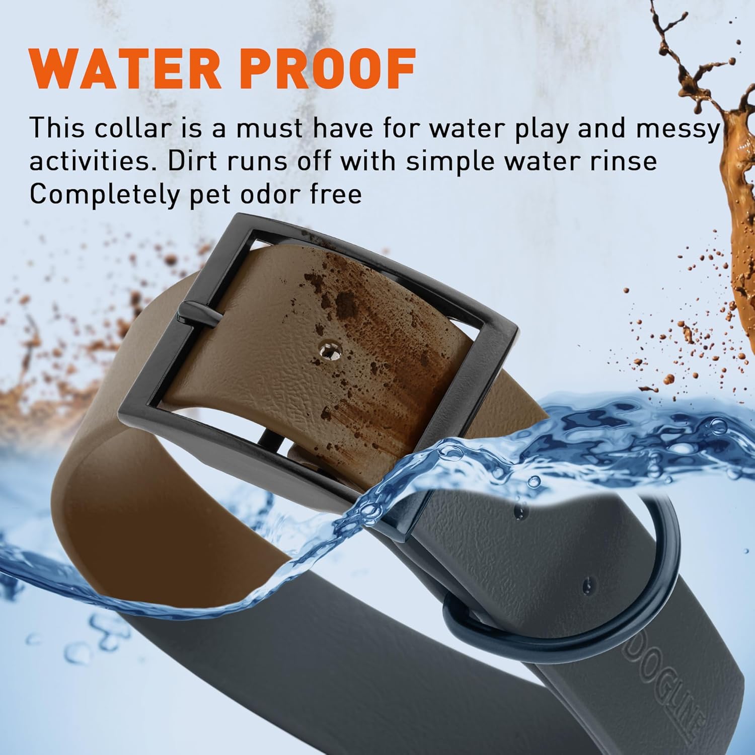 - Free Your Dog to romp in puddles and retrieve from lakes with the Dogline Biothane Waterproof Dog Collar. This water-repellent collar stays dry and odor-free, without shrinking or losing flexibility.