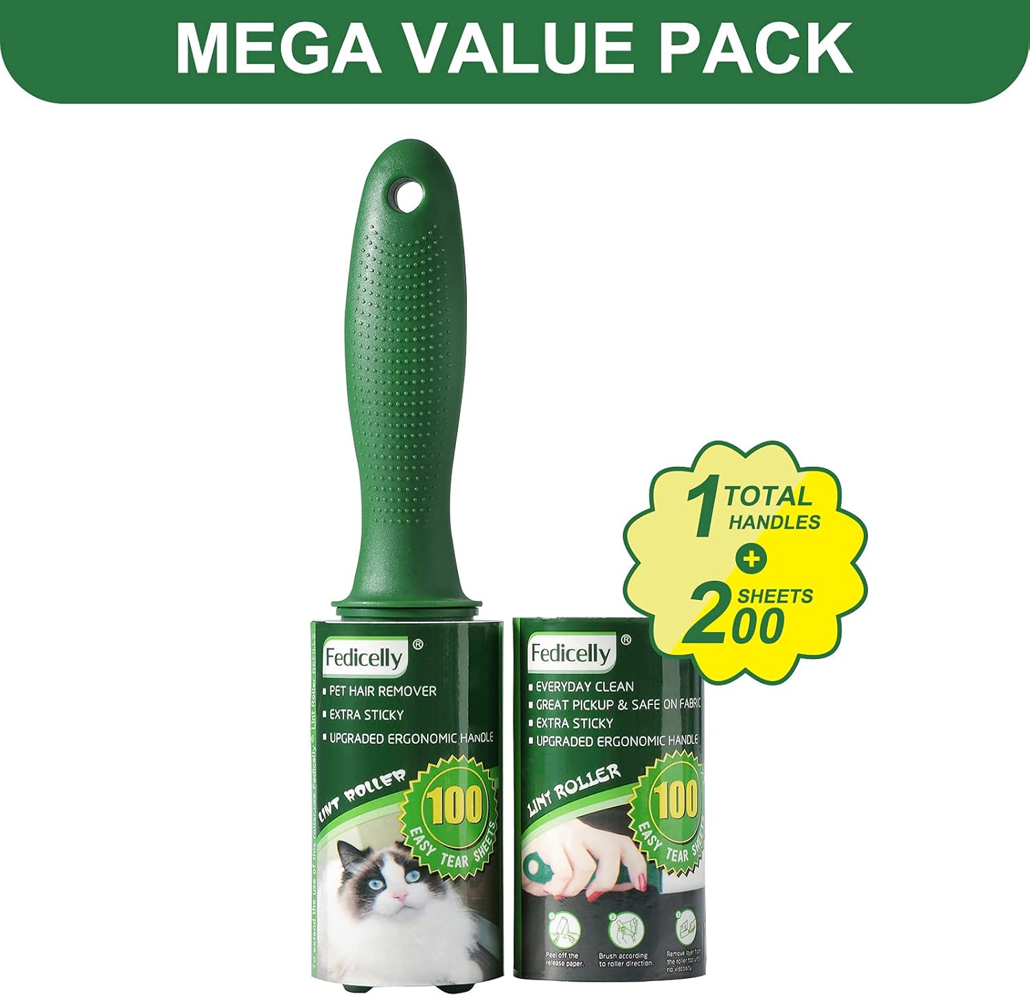 - MEGA VALUE SET 200 SHEETS: This pet lint roller come with 1 upgraded ergonomic handles and 2 lint roller refills, each lint roller refill has 100 Sheets, which is 1.5-2 times that of other similar products, that means youβll have a total of 200 sticky sheets in stock. Such economical value pack can be long lasting to meet your everyday clean needs. Better quality, higher cost performance.