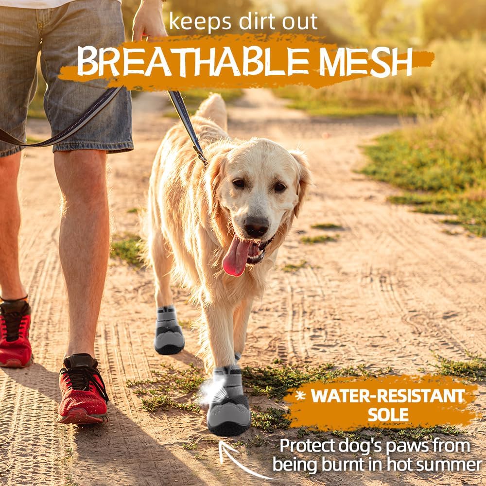 Dog Shoes for Large Dogs, Medium Dog Boots & Paw Protectors for Hardwood Floors, Outdoor Dog Booties for Hot Pavement Winter Snow Hiking, Breathable Dog Shoes with Reflective Strips Size 4