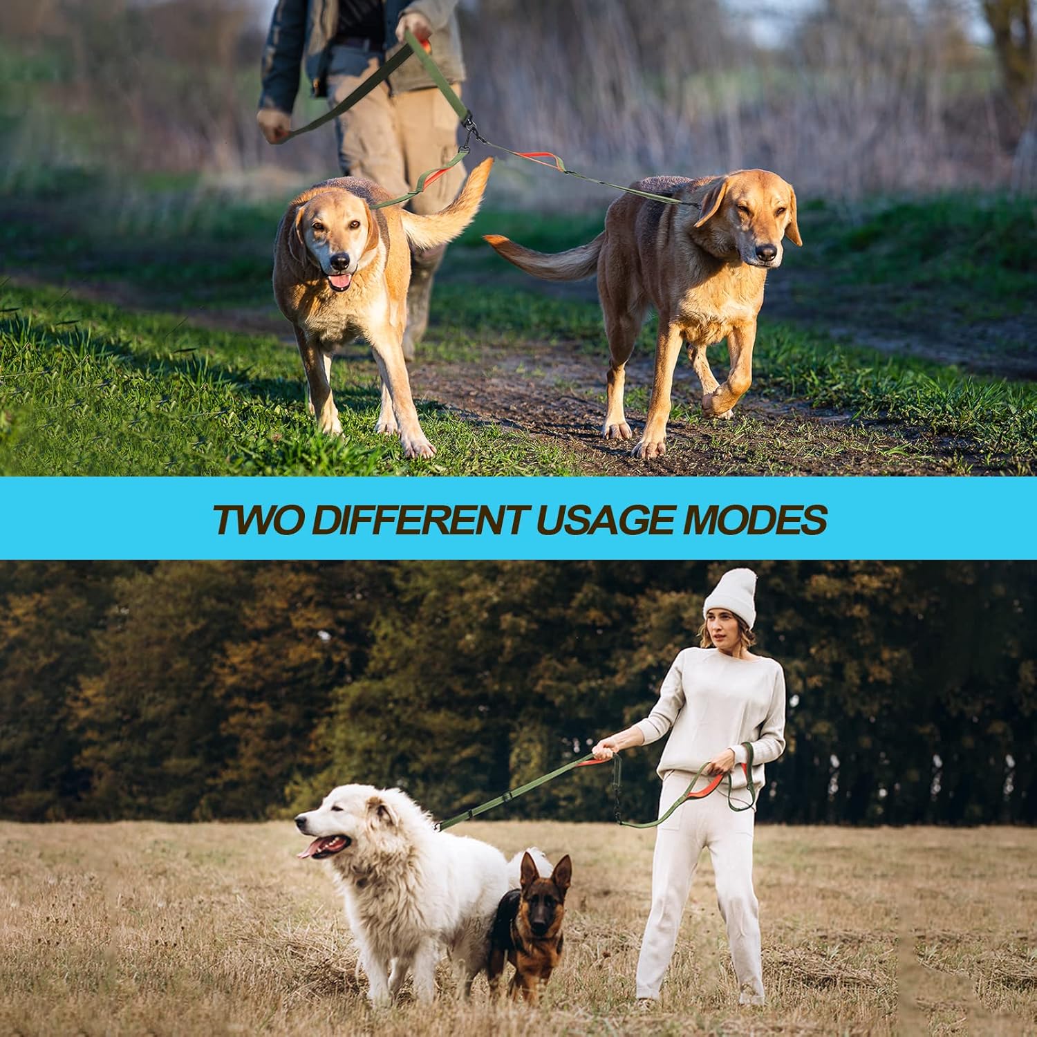 - 4 Comfortable Padded Handles: No more burned hands with 4 soft padded handles, which bring ultimate comfort and let you free up one hand while using this split leash for walking 2 dogs