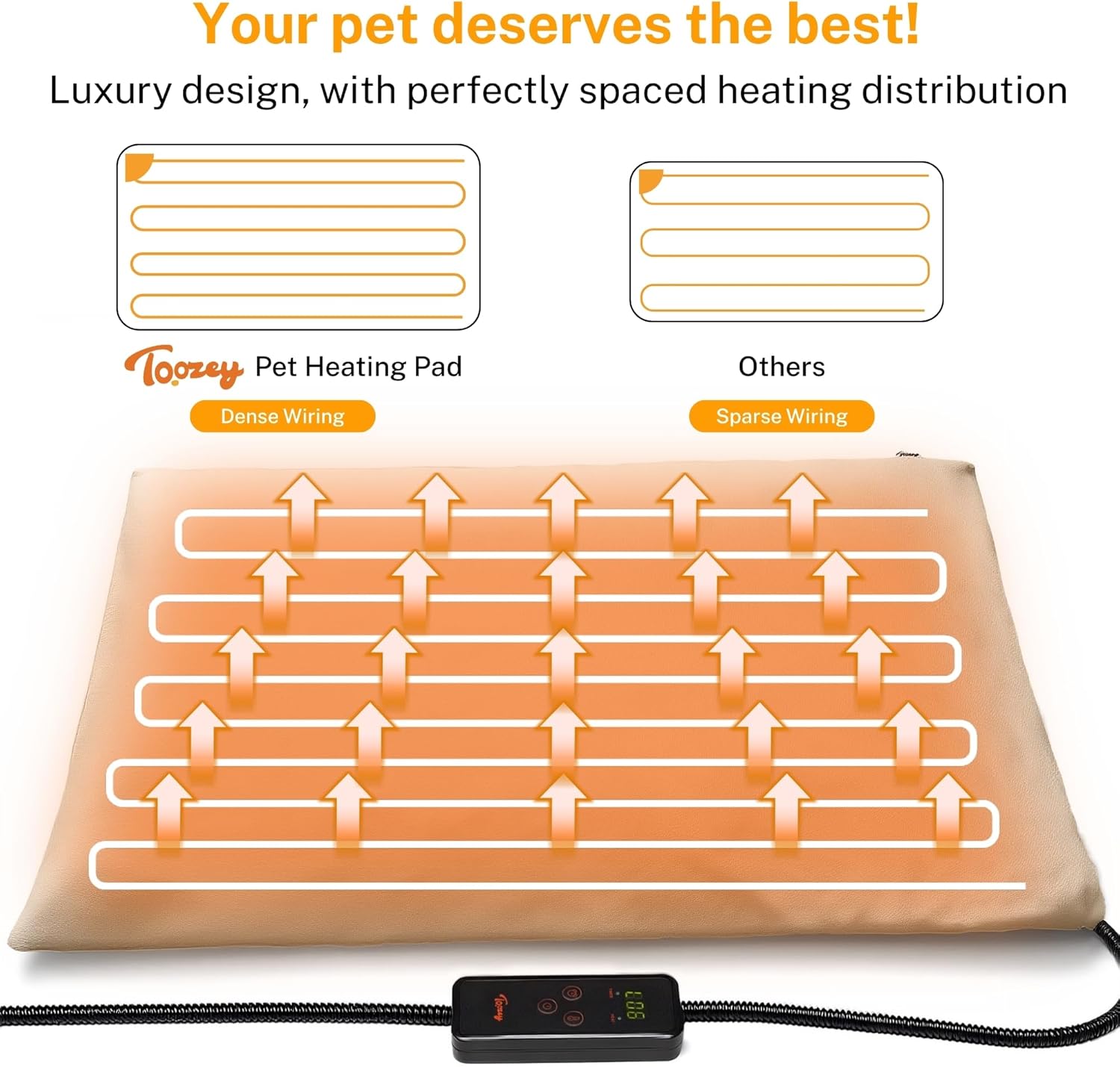 Toozey Pet Heating Pad, 6 Adjustable Temperature Dog Cat Heating Pad with Timer, Waterproof Heated Dog Bed with Chew Resistant Cord, Indoor Electric Pet Heated Mat 28x20in