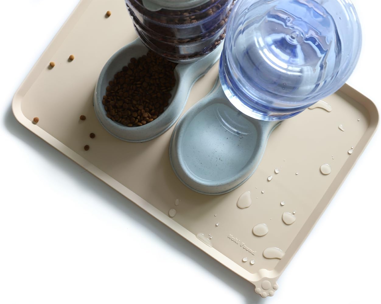 Hoki Found Large Silicone Pet Feeding Tray - Waterproof Dog Pet Cat Feeding Mat - Non Slip Pet Dog Cat Food Bowl Mats Placemat -Pet Water Mats for Carpet -Papayawhip