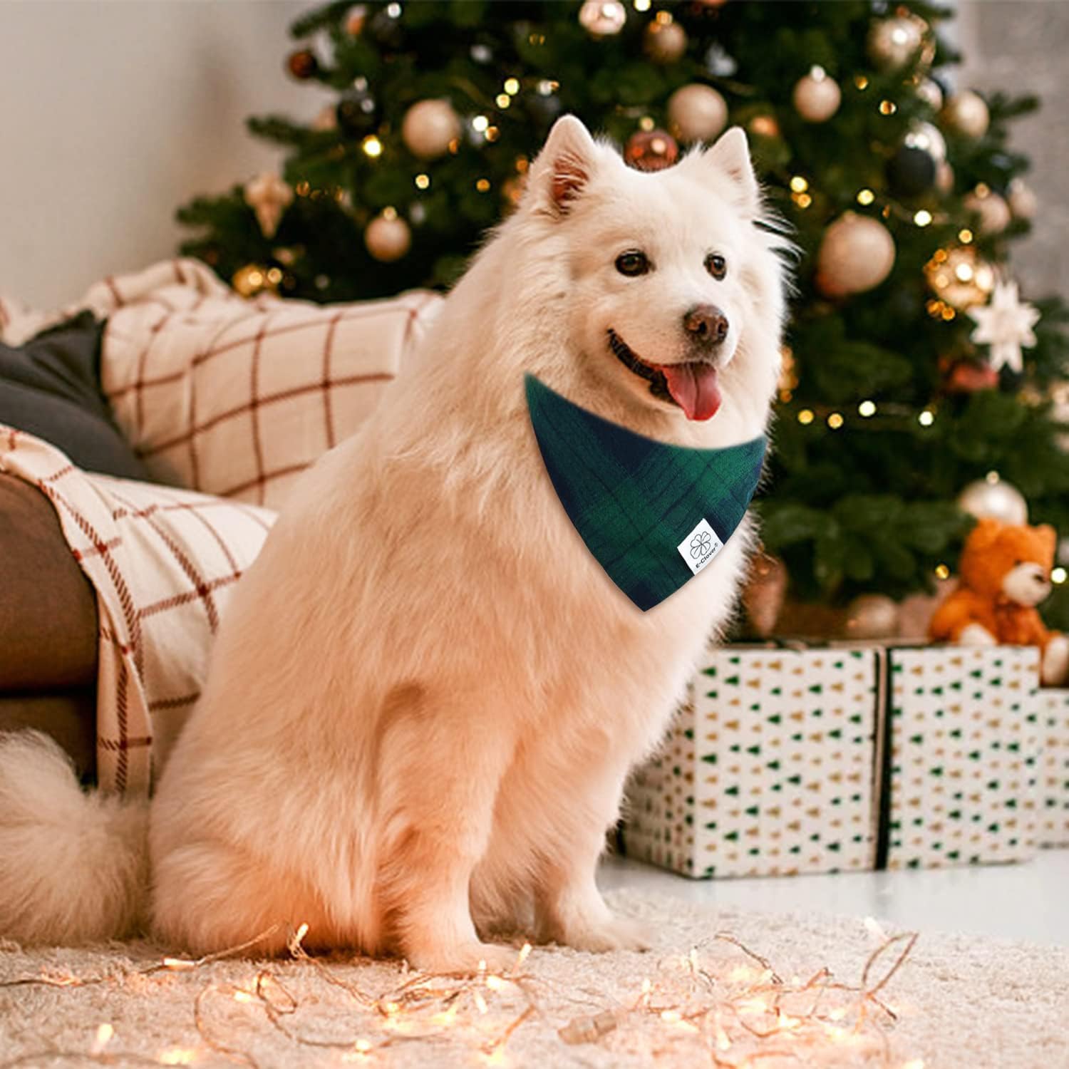 E-Clover Summer Dog Bandanas Boy & Matching Scrunchie Set Plaid Dog Bibs Scarf Triangle Kerchief Bandana for Medium Large Dogs Birthday Gifts Pet Owner Mom Green