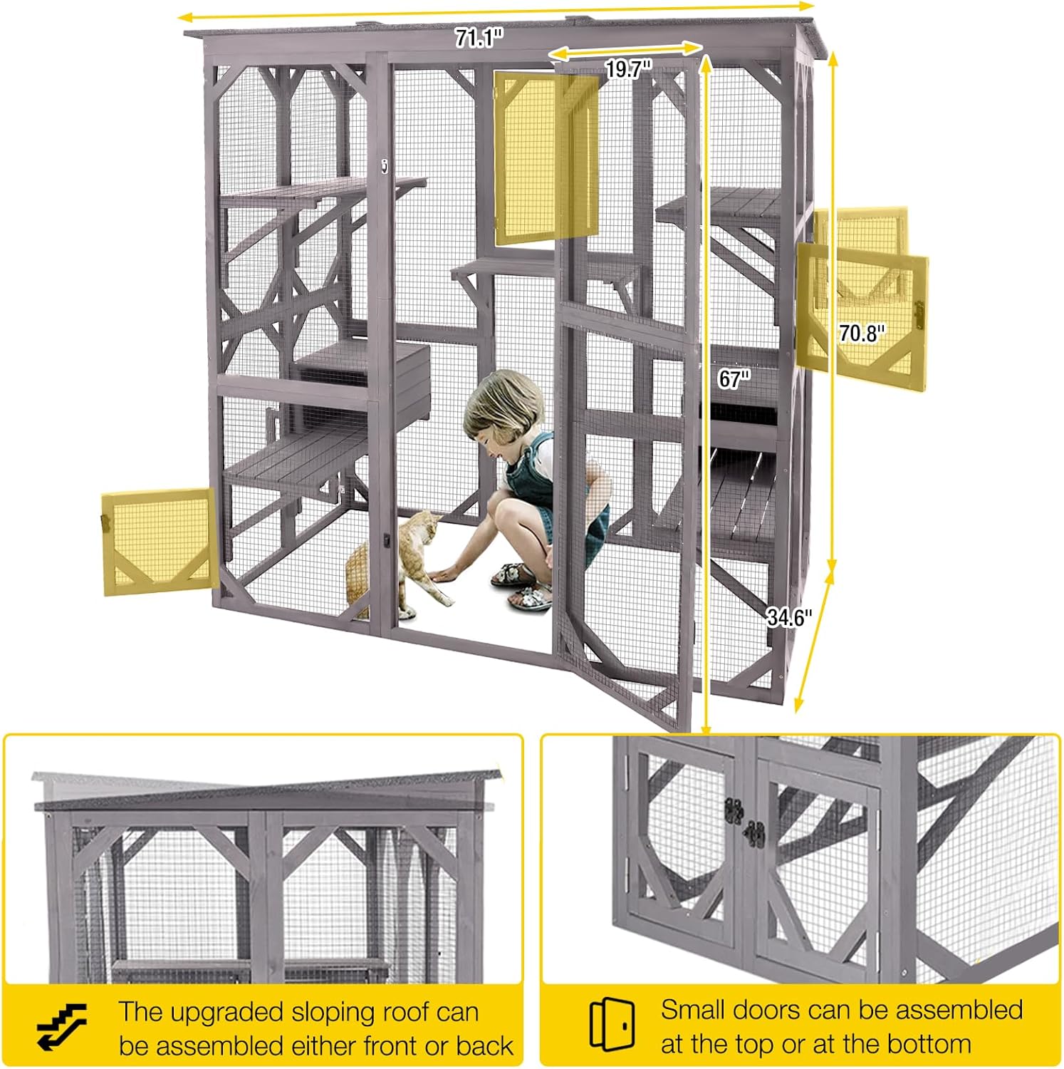 - Walk-in Style Cat Cage: Large enter door at 67" tall allow you to go inside to interact with your cats,make feeding and cleaning easy