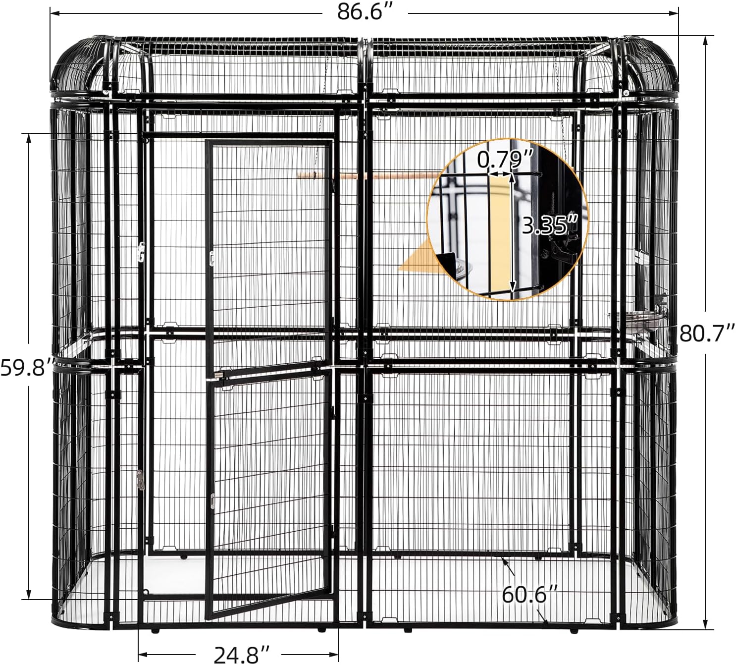 - Need to Assemble - The cage comes with three separate packages. Overall Size: 86.5βL x 60.5βW x 80.39βH;Door size: 59.8"H X 24.8"W