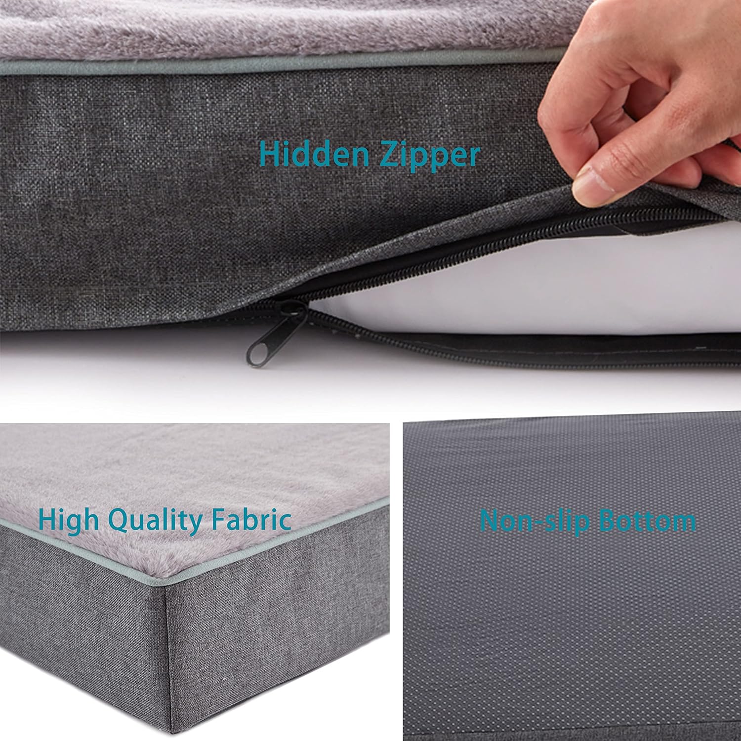 - Orthopedic memory Foam: 3β thick double foam distributes the weight of dogs,egg-crate cooling gel memory foam help relieve pressure, massage effect;The lower layer of high-density foam firmly supports the dog.Rest and relax in the dogβs bed to provide additional support for spine, muscles and joints.