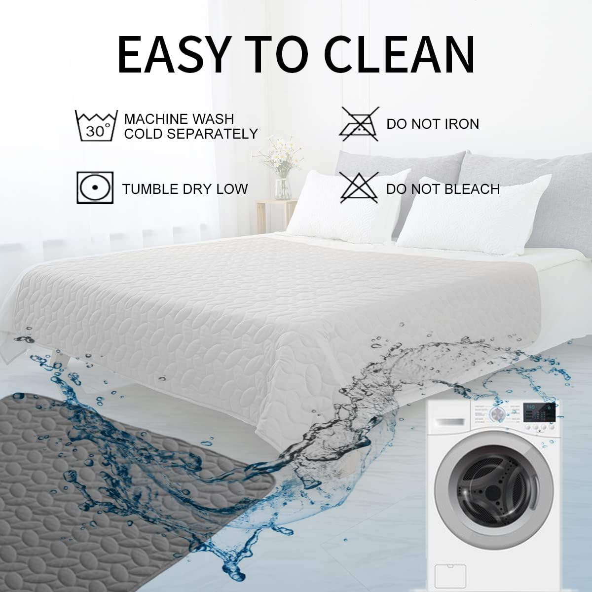 - 5-LAYERS MATERIAL: This premium quilted bed cover is constructed with multi layers fabric. Features a sanitized protective finish and odor prevent to keep your furniture looking and smelling fragrant. Chemicals free and ECO friendly, high safety to kids and pets