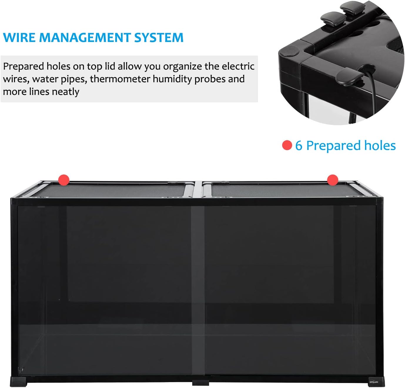 - γ270Β° Full View Glass TankγThis 3 sides glass of the 120 gallon reptile tank is transparent, allows you to watch and interact with your pets easily.