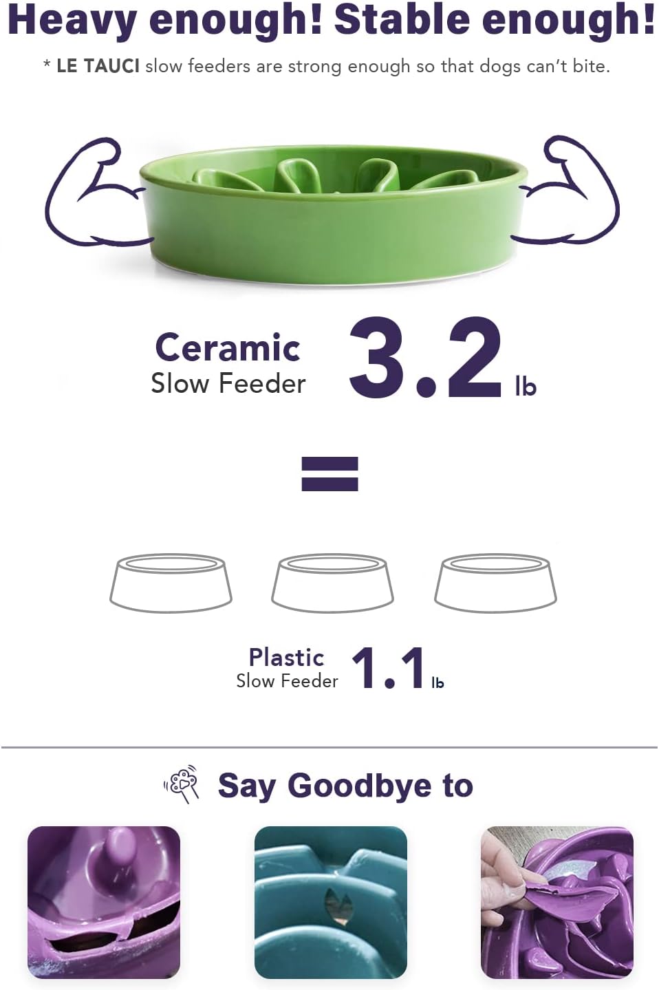 - Premium Ceramic, Durable and Stable: We use premium ceramic, not easy to damage, and it is sturdy and heavy enough to be more stable. However, if your dog is using a slow feeder bowl for the first time, we recommend starting with a silicone bowl to help them get used to it.