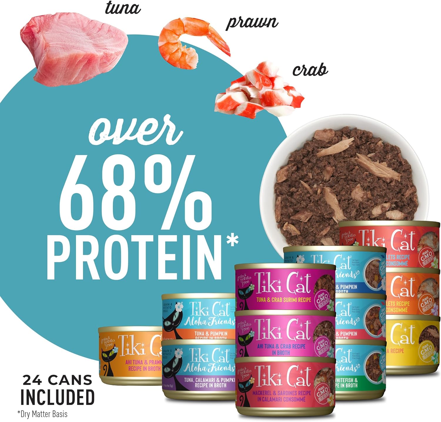 Tiki Cat® Wet Cat Food Mega Pack, Fish Favorites Variety Pack, 2.8/3 oz. Can (24 Count)