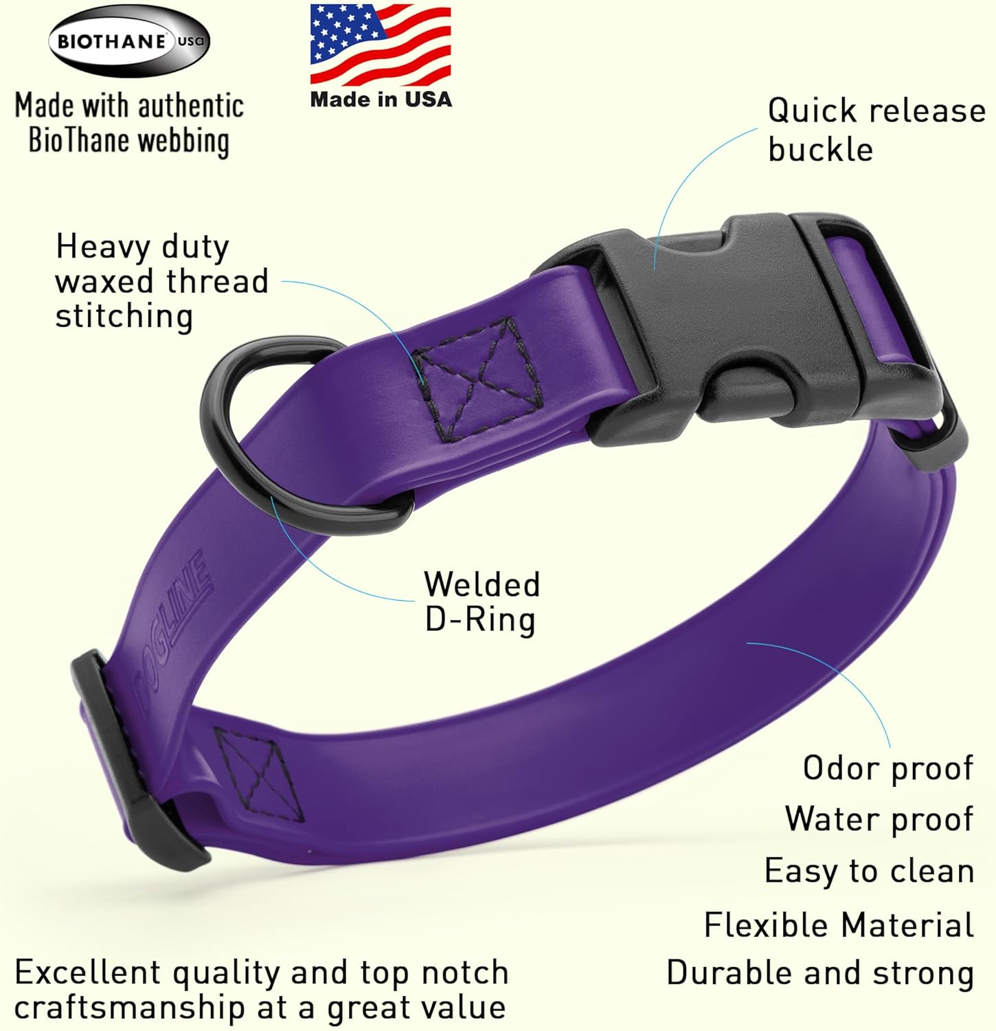Dogline Biothane Waterproof Dog Collar with Quick Release Buckle Strong Coated Nylon Webbing with Odor- Proof for Easy Care Easy to Clean Fits Small Medium Large Dogs, Purple 5/8" W 9-14" L