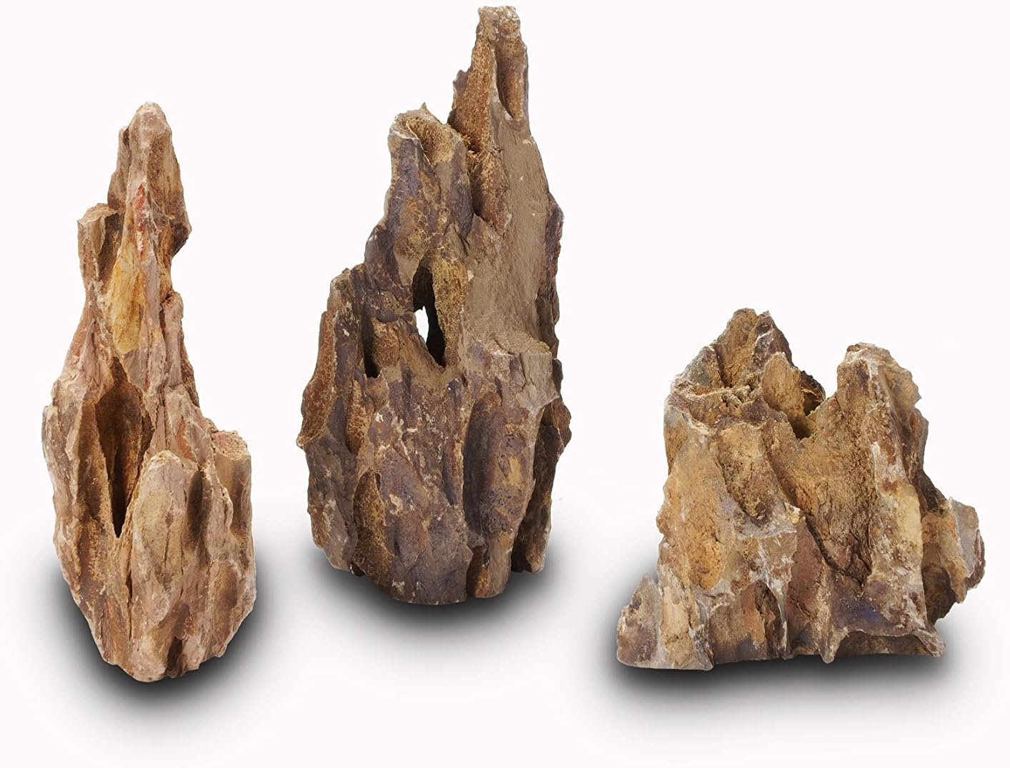 - 【Unique Shape and Natural Texture】The unique crevices and holes create a unique and changeable shape, making it naturally attractive and facilitating the anchoring of aquatic plants such as moss and providing habitat and hiding place for aquarium shrimp and fish. The variety collection contains stones from 2 to 8 inches for a layout project for tanks up to 40 gallons.