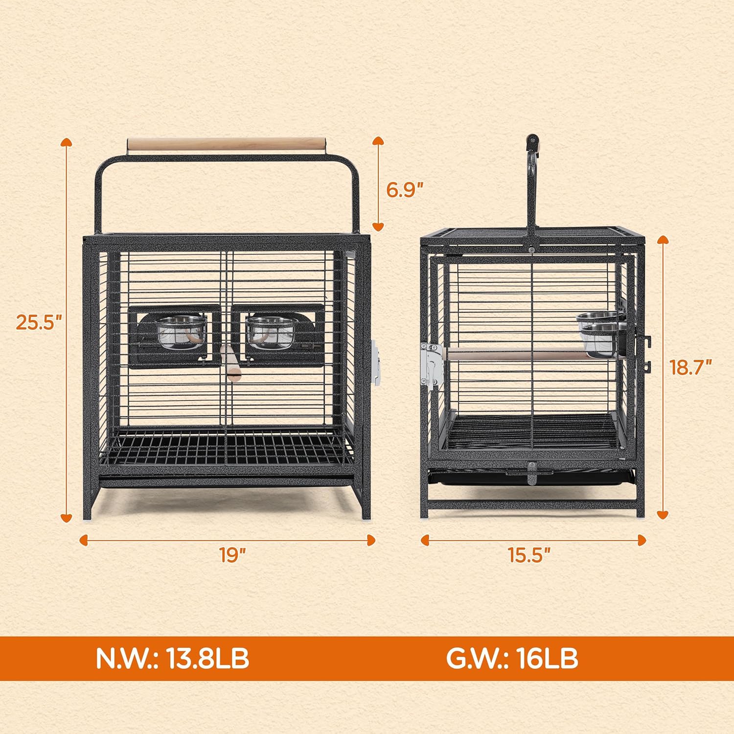 - Spacious Yet Portable: With dimensions of 19β³L Γ 15.5β³W Γ 18.7β³H and a 0.6β³ bar spacing, this bird carrier cage offers ample space for small to medium birds like canaries, budgies, lovebirds, conures, and cockatiels while remaining easy to transport