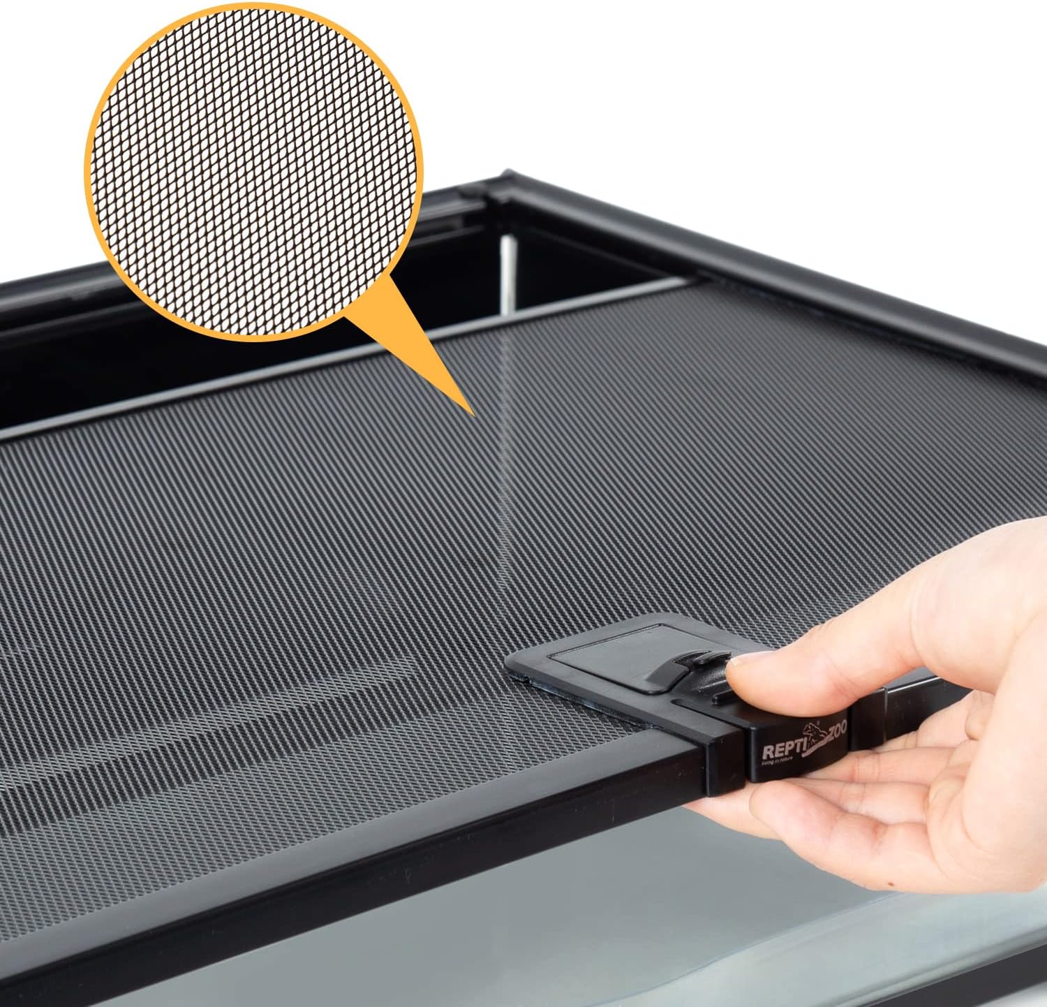 - γFull Glass Tankγ: This reptile terrarium is made of float glass which is more appealing and sturdier than other plate glass. The removable top mesh screen to provide plenty of ventilation and safe for overhead heat sources to meet the needs of the reptile.