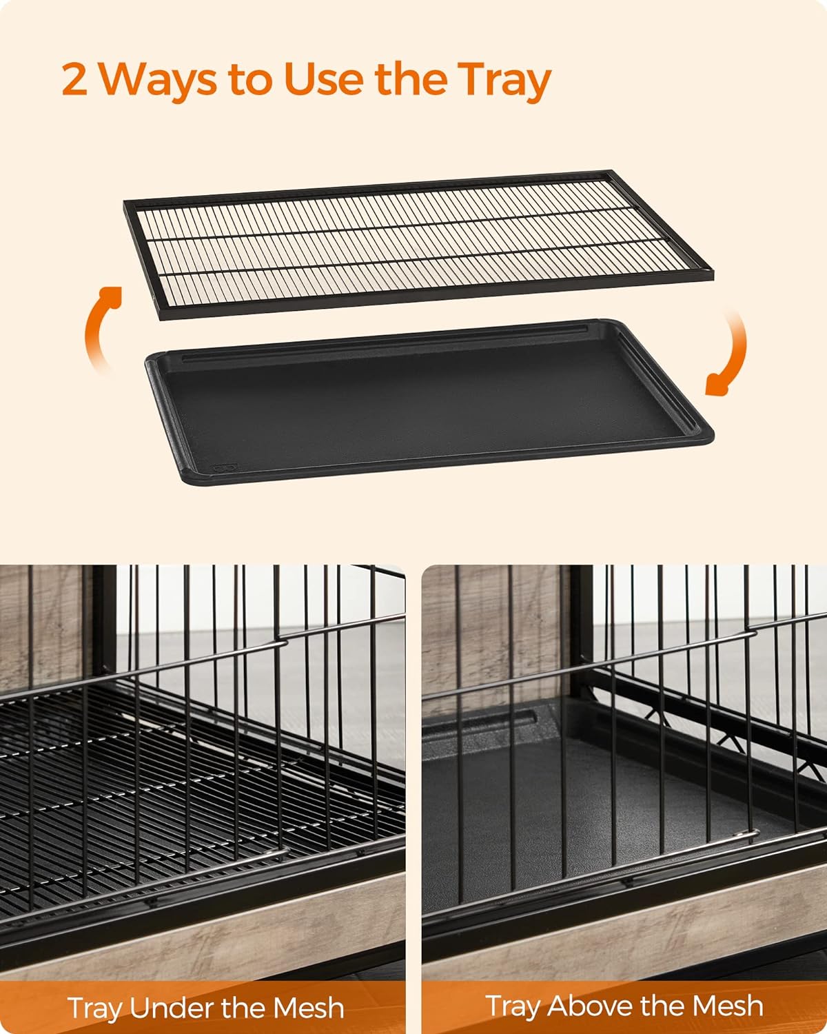 - [Sturdy and Chew-Resistant] Made with durable particleboard and steel, this piece of dog furniture is sturdier and more chew-resistant than wooden dog crates, offering a lasting, stable, and safe retreat for your fur friend