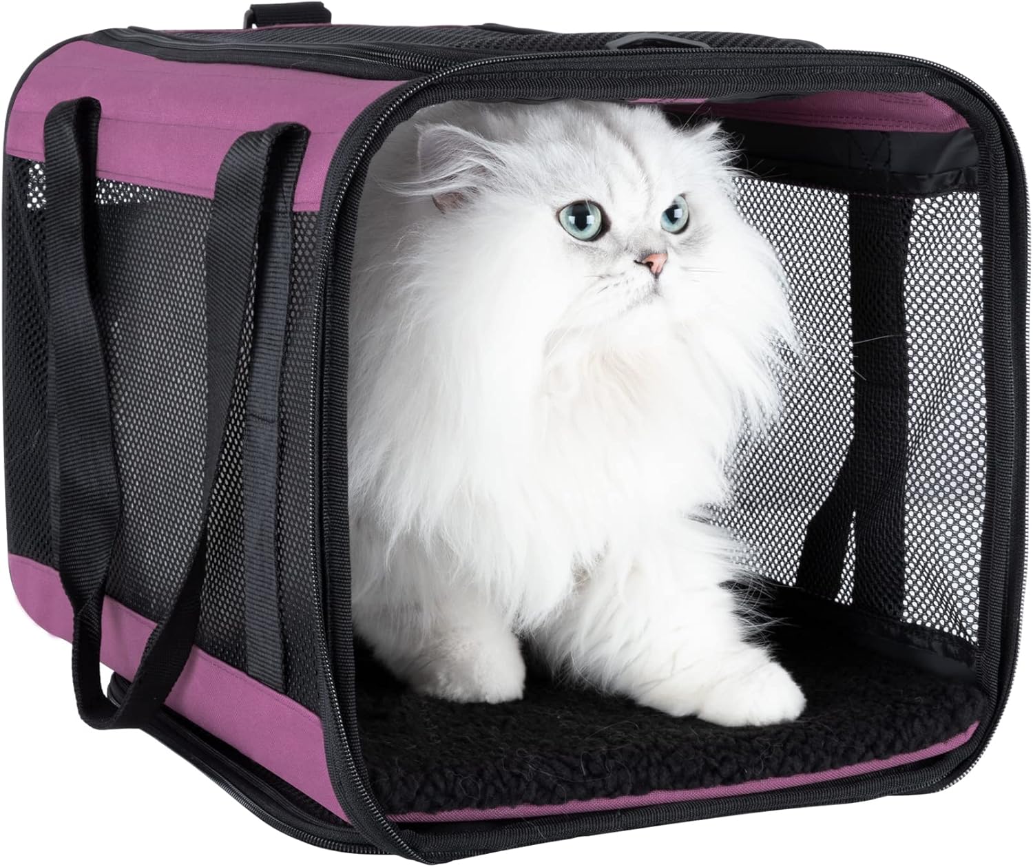 petisfam Soft Pet Carrier for Large and Medium Cats, 2 Kitties, Small Dogs. Easy to Get Cat in, Great for Cats That Don't Like Carriers (Viva Magenta)
