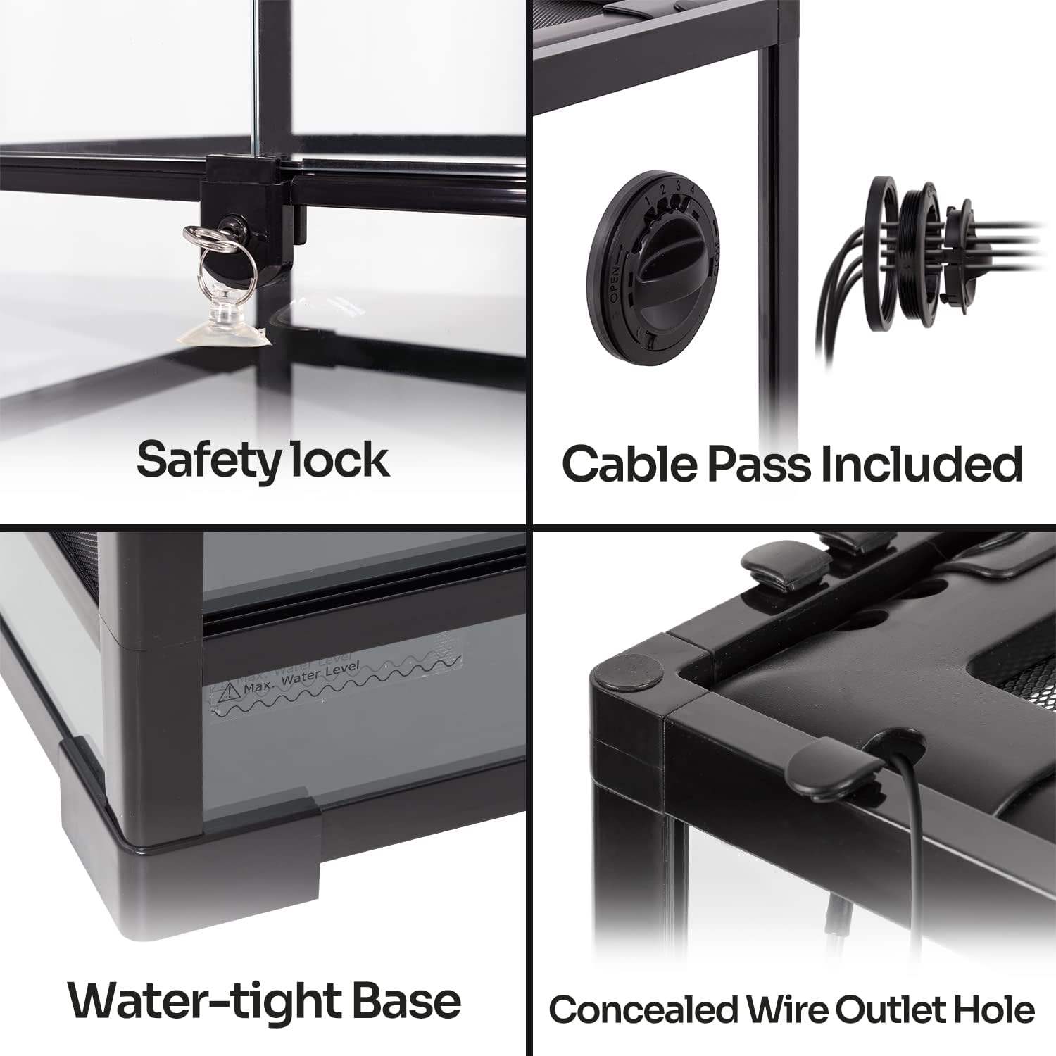 - γFront Opening Doorγ: The front door can open separately and it's easy for you to feed, clean or add decoration. And the terrariums feature anti-escaping safety lock to prevent escape.