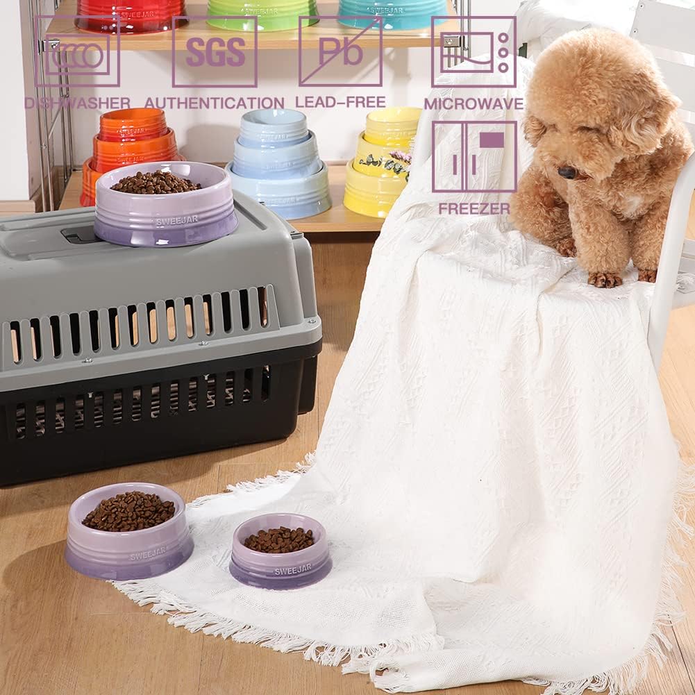- Non Skidding - SWEEJAR dog bowls are made of food grade porcelain, microwave & dishwasher safe, easy to clean. The ceramic is heavy to help keep the bowl upright when dog eat food. No messy floors to clean.