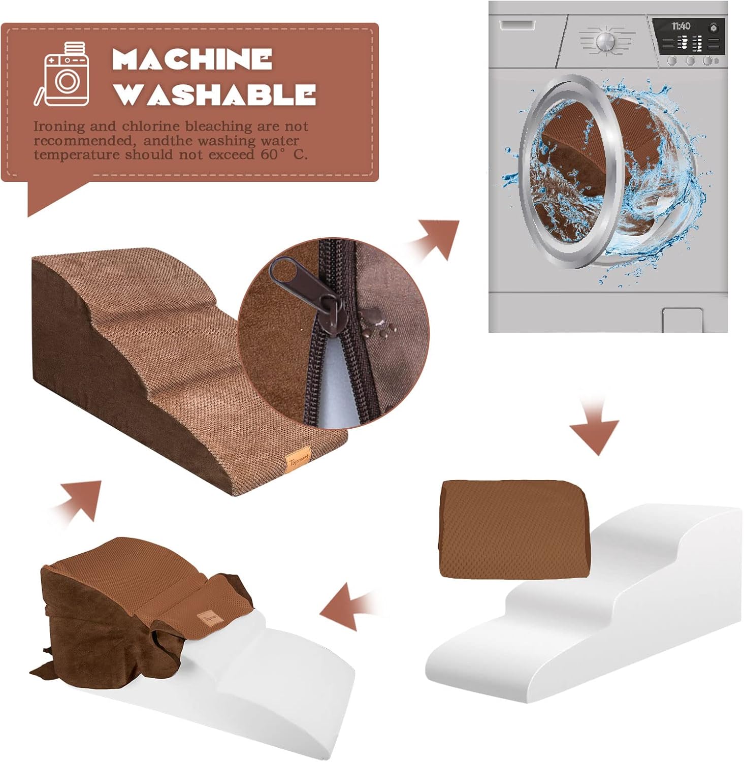- Easy to Assembly & Clean: The stair cover is removable and machine-washable. Stair made of 30D High density foam,no frame,high rebound, not easy to lose shape. we recommend it for pets weighing less than 60 lbs.