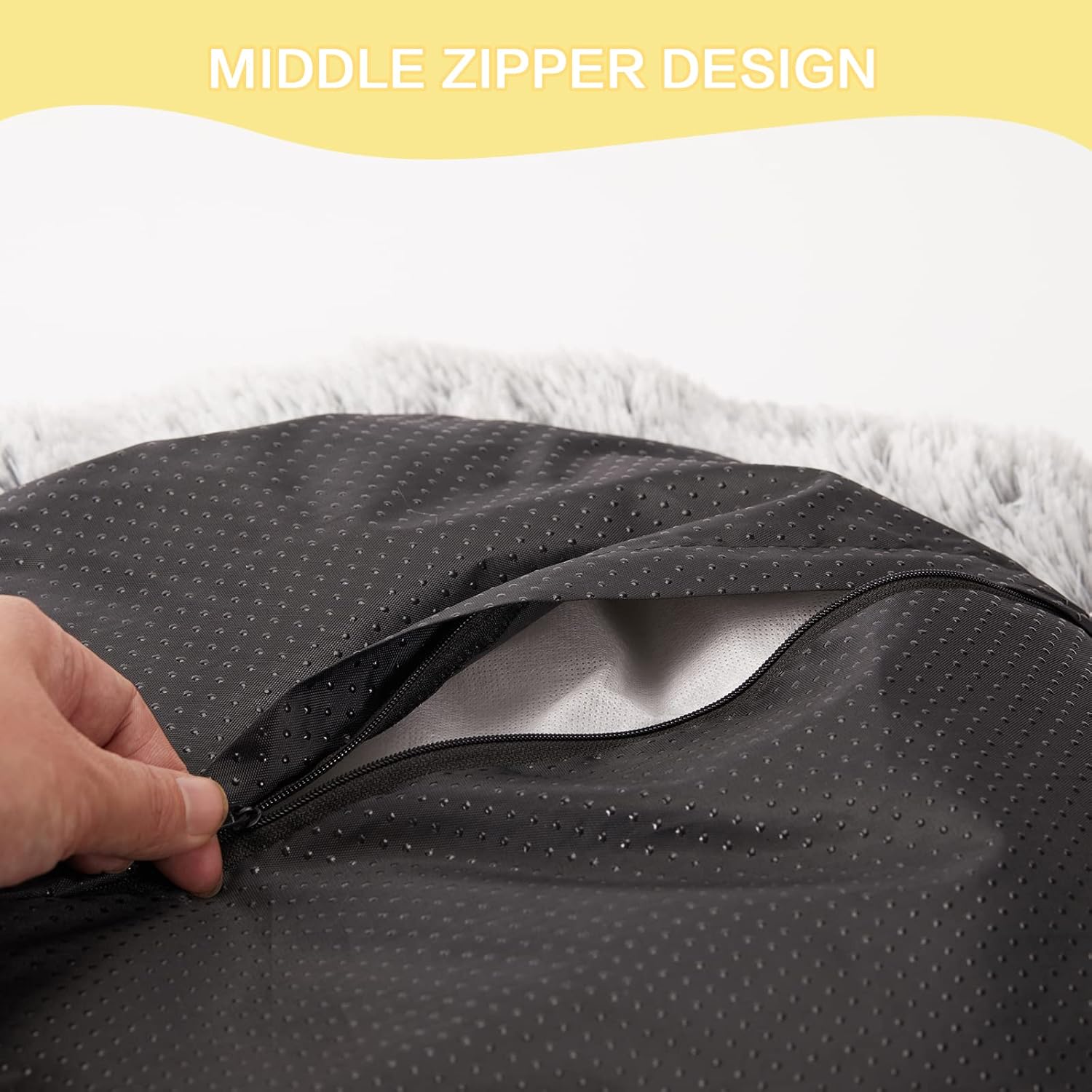- [Easy Care] This plush dog bed is equiped with a middle zipper on the bottom. The central cushion is removable for easy cleaning. Tumble dry at low temperature after washing. Do not bleach. Please shake and pat the fuzzy dog bed to make completely fluffy before use.