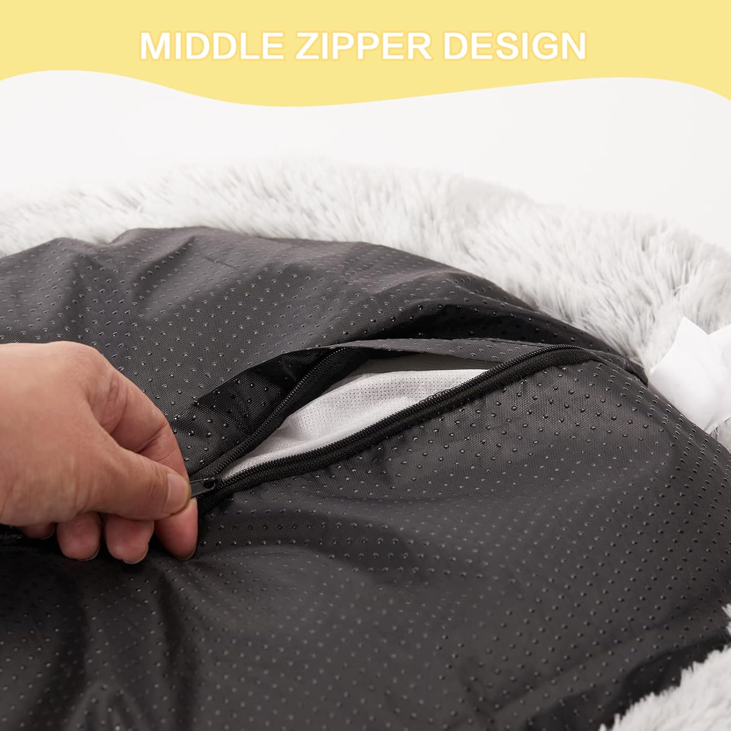 - [Easy Care] This plush dog bed is equiped with a middle zipper on the bottom. The central cushion is removable for easy cleaning. Tumble dry at low temperature after washing. Do not bleach. Please shake and pat the fuzzy dog bed to make completely fluffy before use.