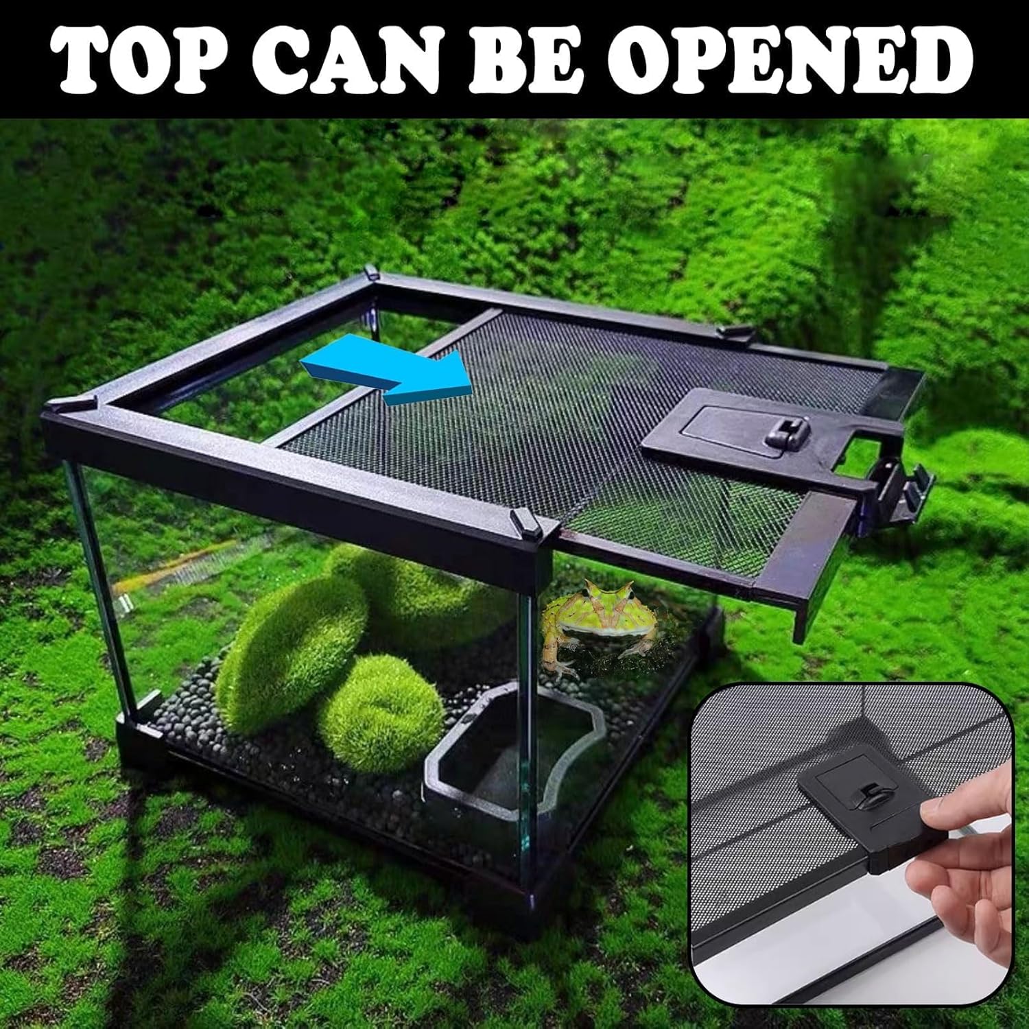 - γπ¦Reptile Glass TankγThis aquarium is made of high quality glass material with 360Β° panoramic view, allowing you to see your critter's activity and physical condition from all angles, ideal habitat for small reptiles. This glass tank can also be filled with water if needed.