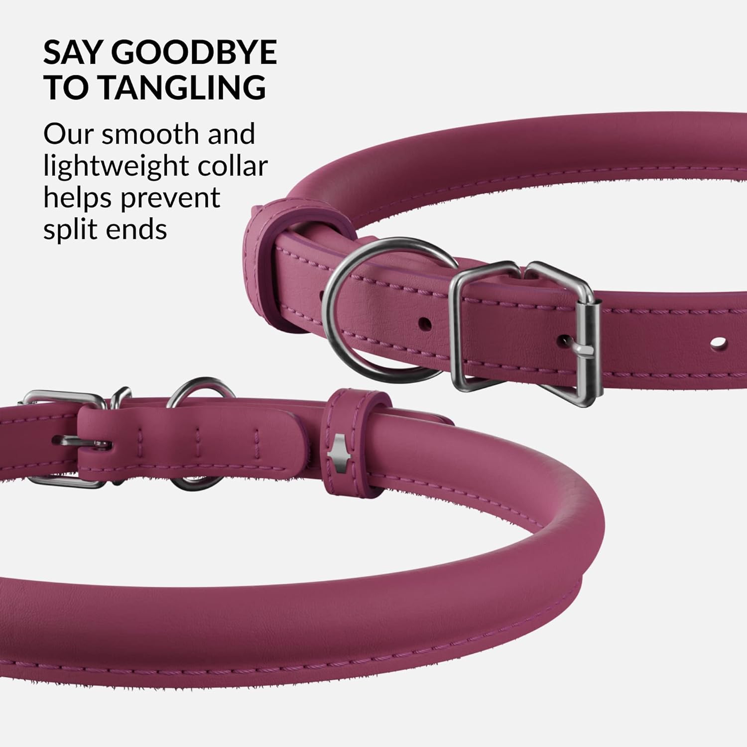 CollarDirect Rolled Leather Dog Collar, Soft Padded Round Puppy Collar, Handmade Genuine Leather Collar Dog Small Large Cat Collars 13 Colors (18-22 Inch, Pink Smooth)
