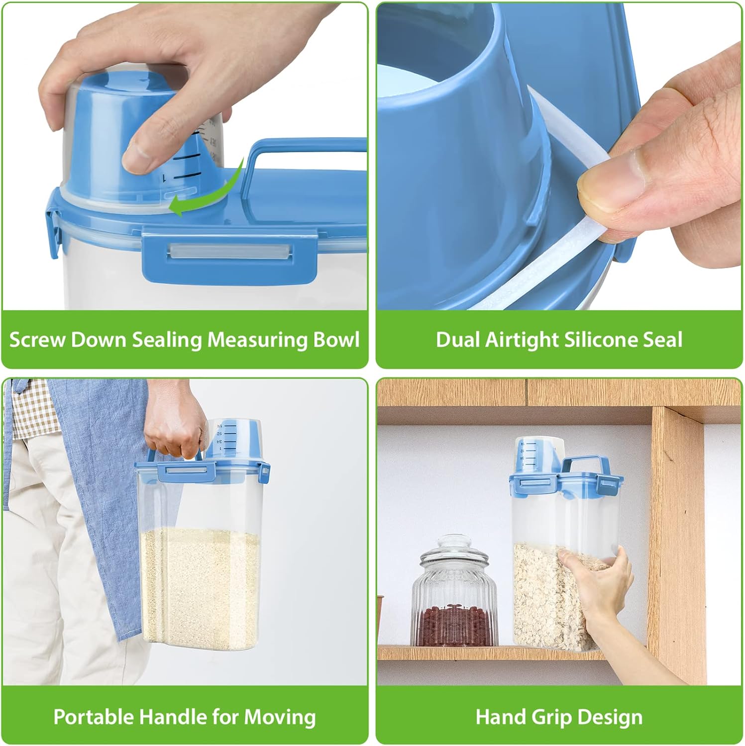 Rice Airtight Storage Container, 3 to 5Lbs Cereal Dry Food Flour Bin, Pet Dog Cat Food Dispenser with Measuring Cup, BPA Free Clear Plastic Kitchen and Pantry Organization Bin for Sugar, Pasta