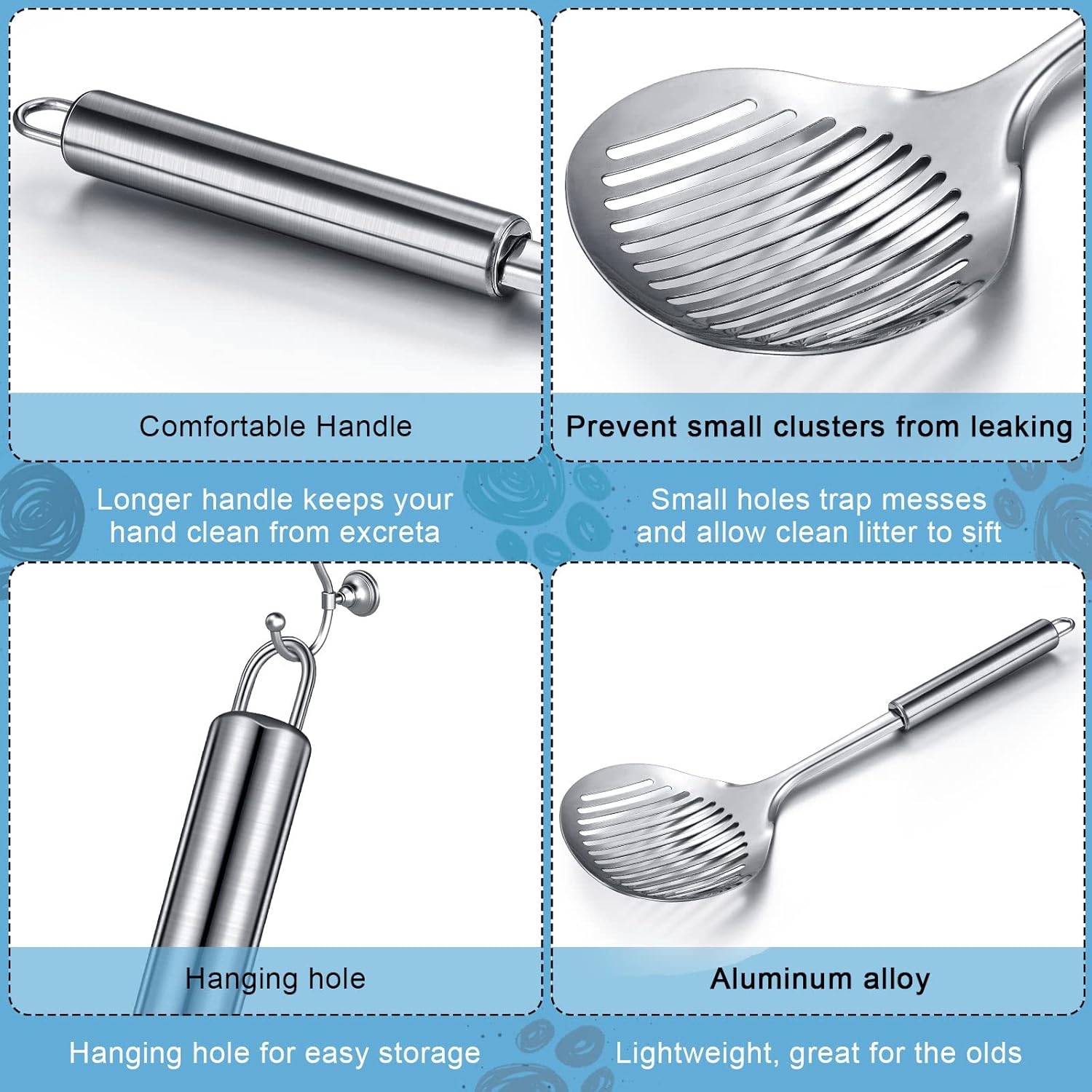 - Keep Kitty Litter Box Clean: the metal cat litter scoop helps to keep the kitten litter box fresh and clean, providing you and your lovely cat with a clean and tidy environment