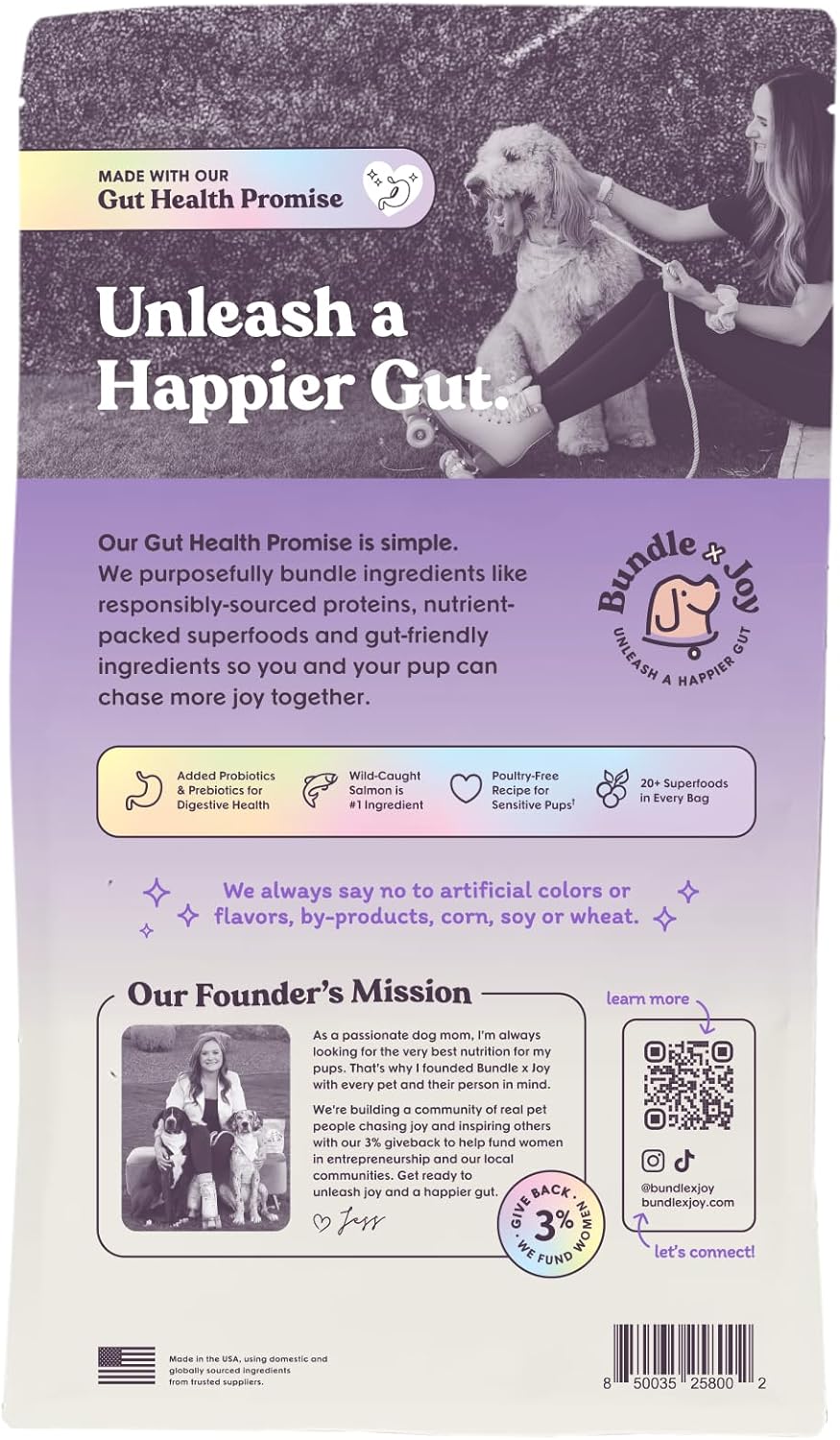 - FOR ALL ADULT BREEDS AND SIZES: Bundle x Joy dog food has omega fatty acids to support healthy skin and a shiny coat and probiotics to support digestion. The kibble pieces are small enough for small breed dogs to enjoy.