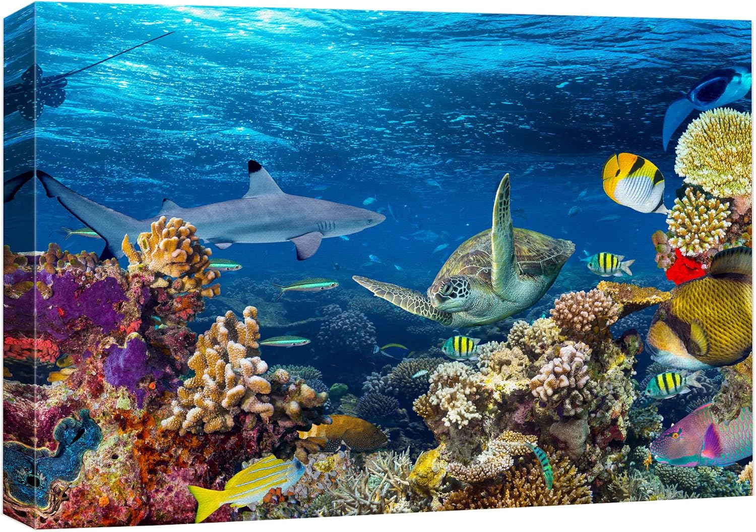 wall26 Canvas Print Wall Art Tropical Island Underwater Turtle Shark Nature Animals Photography Realism Rustic Scenic Landscape Wilderness Earth Colorful for Living Room, Bedroom, Office - 16"x24"