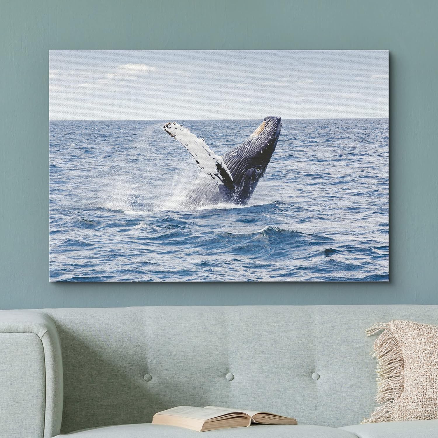 wall26 Canvas Print Wall Art Tropical Ocean Sea Water Horizon Blue Whale Nature Animals Photography Realism Rustic Scenic Landscape Wilderness Colorful for Living Room, Bedroom, Office - 24"x36"