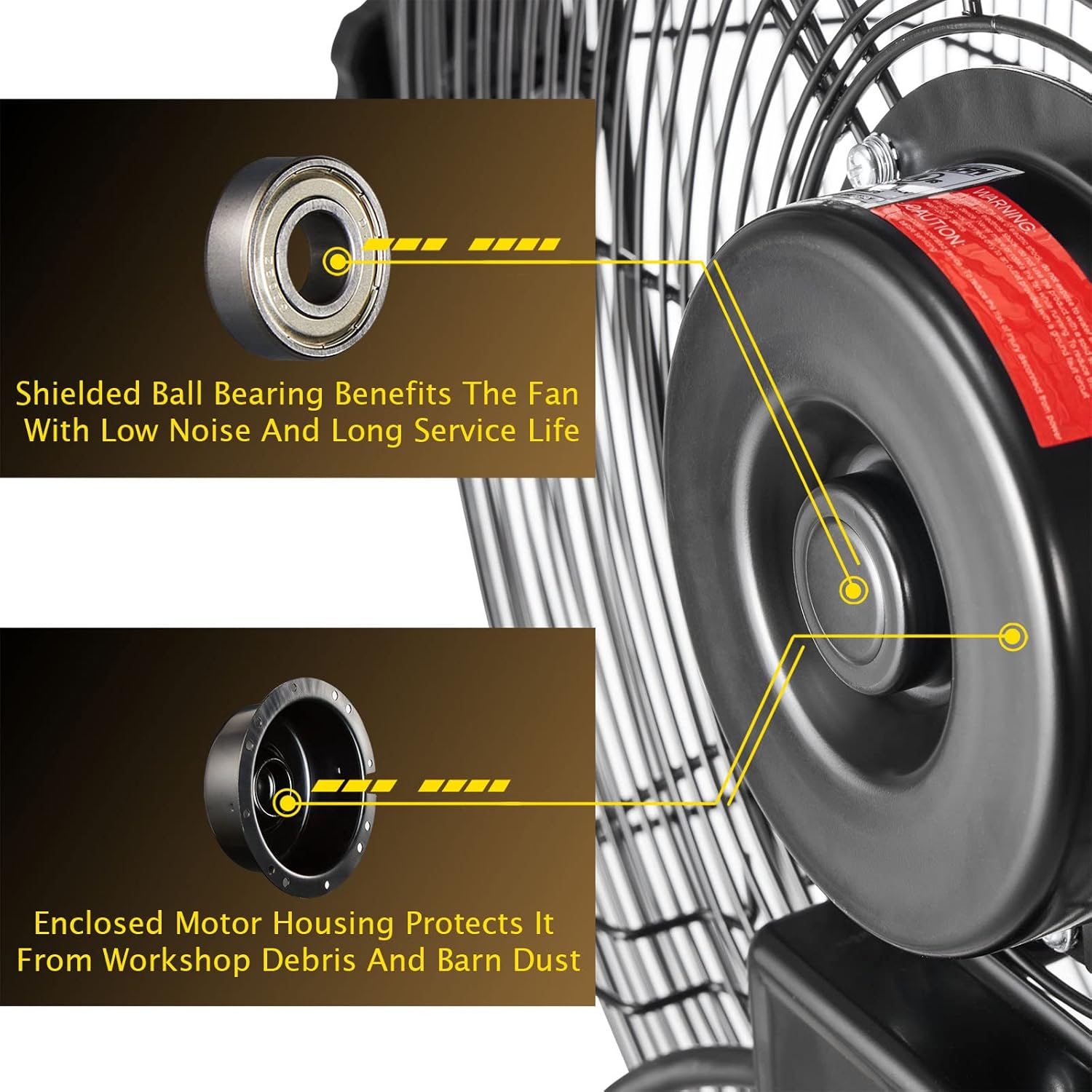 HiCFM 18" Wall Mount Fan, 4600 CFM 3 Speeds High Velocity with TEAO Enclosure Motor, 9 FT Cord, 180 Degree Tilting Heavy Duty Metal Fans for Barn, Garage, Workshop, Warehouse - UL Listed