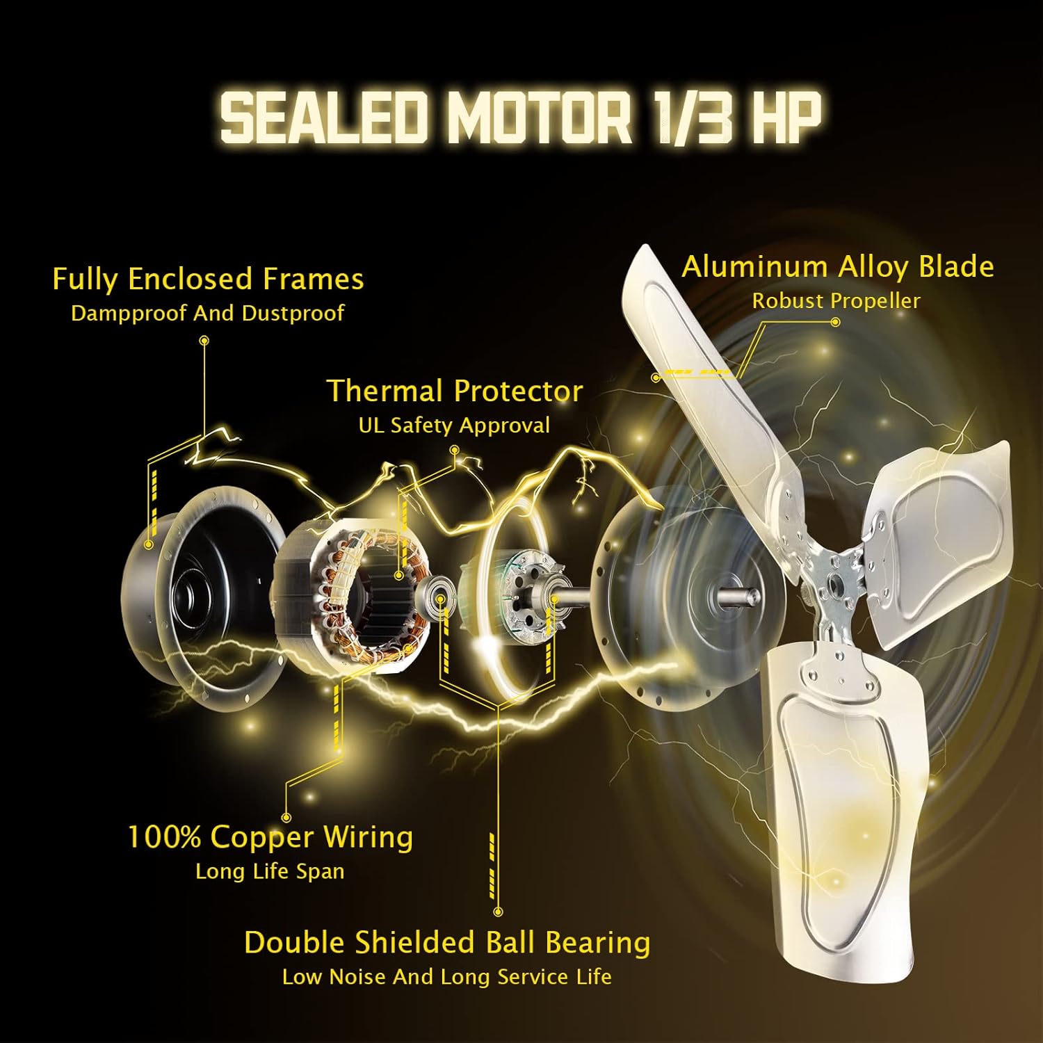 - γMoves Much Airγ: Built with 1/3HP Premium TEAO Enclosed Motor and Shielded Ball Bearings, this heavy duty industrial wall fan provides circulating breeze for large spaces, blowing distance reach 60 feet. It is ideal for Warehouse, Workshop, Factory, Garage, Basement, Greenhouse, Barn, Industrial, Commercial and Residential areas. High speed 9100 CFM / Low speed 7300 CFM