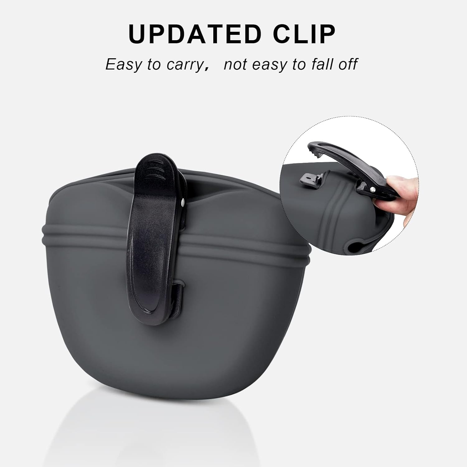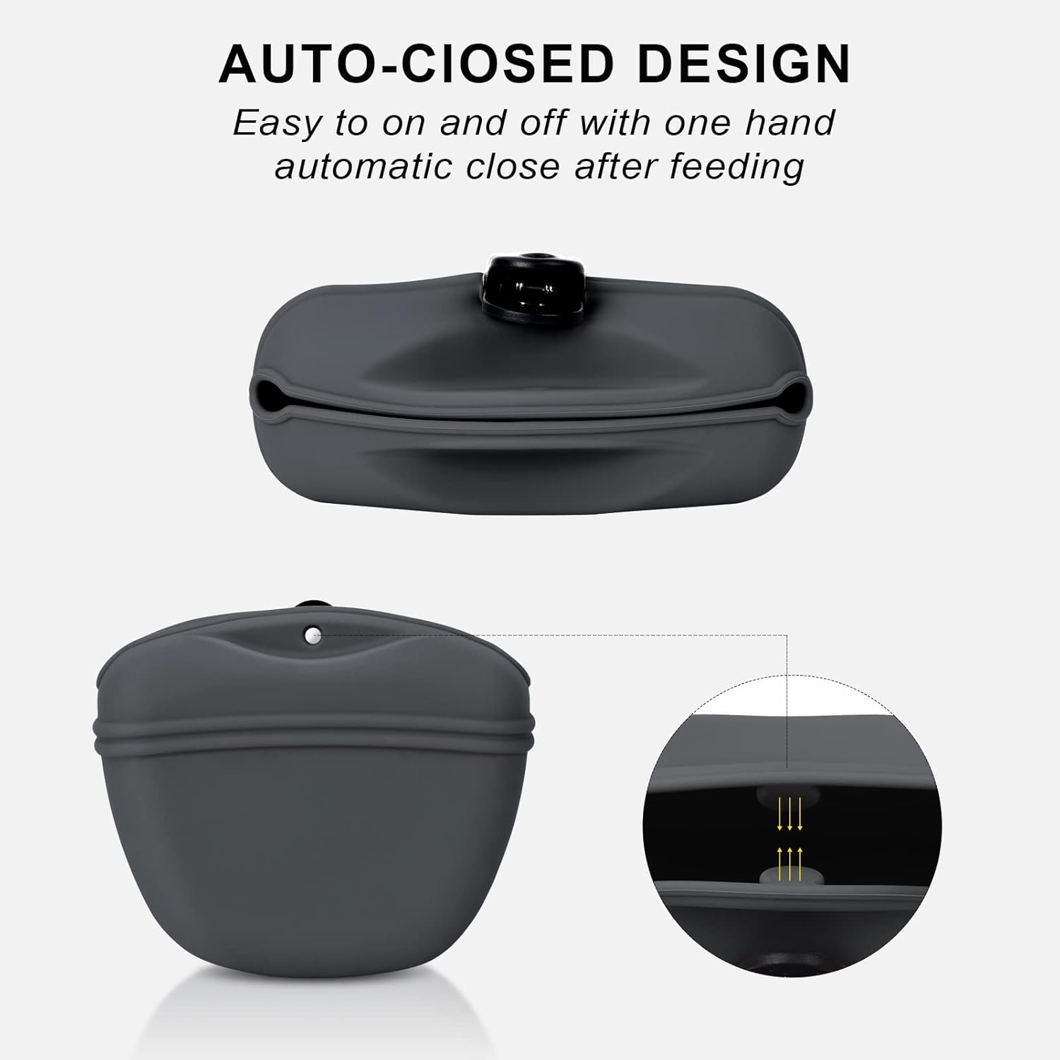 - ๐Silicone Dog Treat Pouch๐ - The silicone dog treat pouch is made of food grade silicone,it can contact dry and wet food directly,safe and healthy. Itโs easy to on and off with one hand, automatic close after feeding.With upgrated clip,It is easy to carry,not easy to fall off.Dish washer safe and easy to clean,The large opening design and soft silicone material make the pet pouch easy to reverse to clean the inner easily and thoroughly.