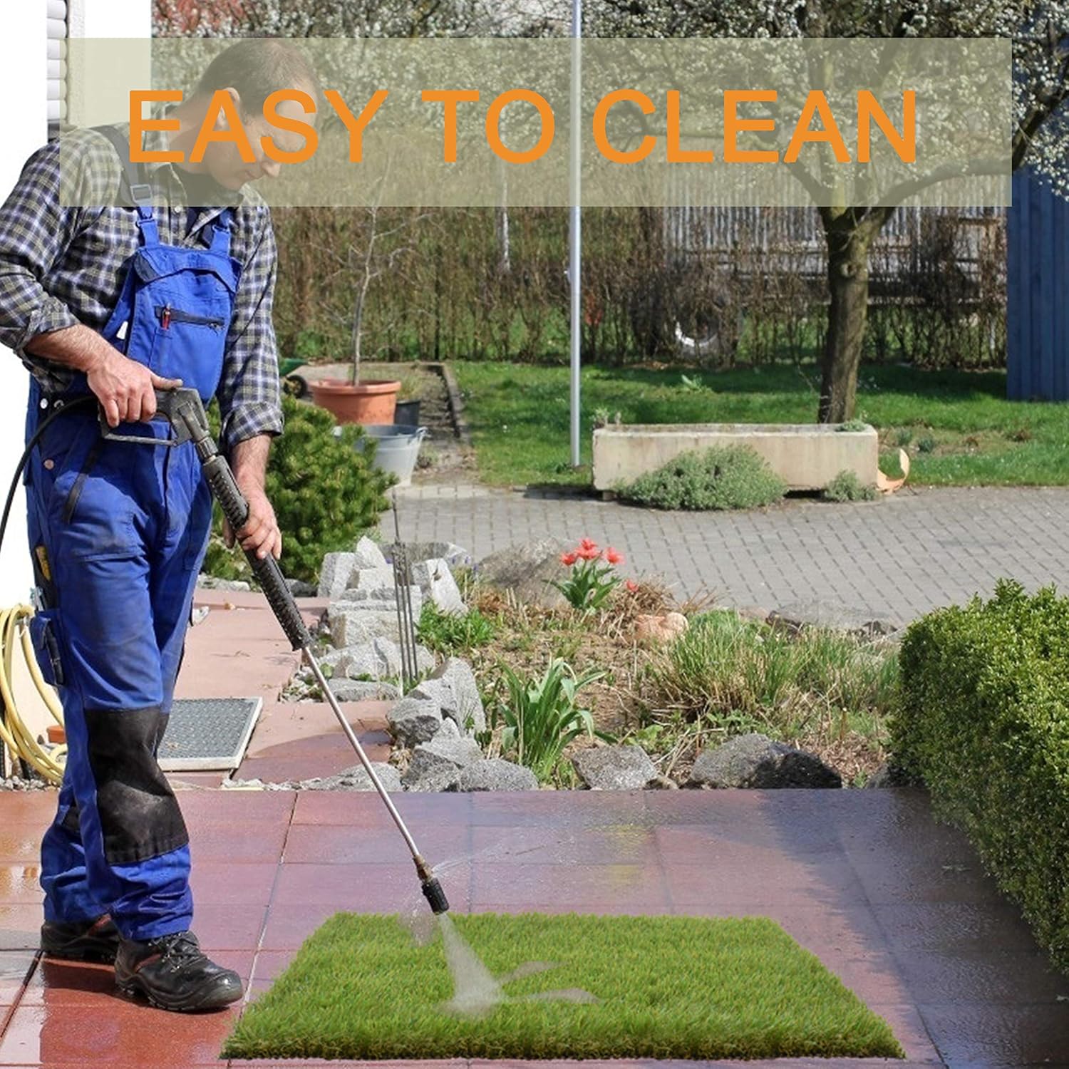 - EASY TO CLAEN: -The dog bathroom mat is easy to clean and can be dried quickly. A dayly hose down with tap water or mild detergent such as soap water should be enough to keep your lawn looking great. No mowing or growing. Reusable turf can save money and prevent waste that disposable pads create.