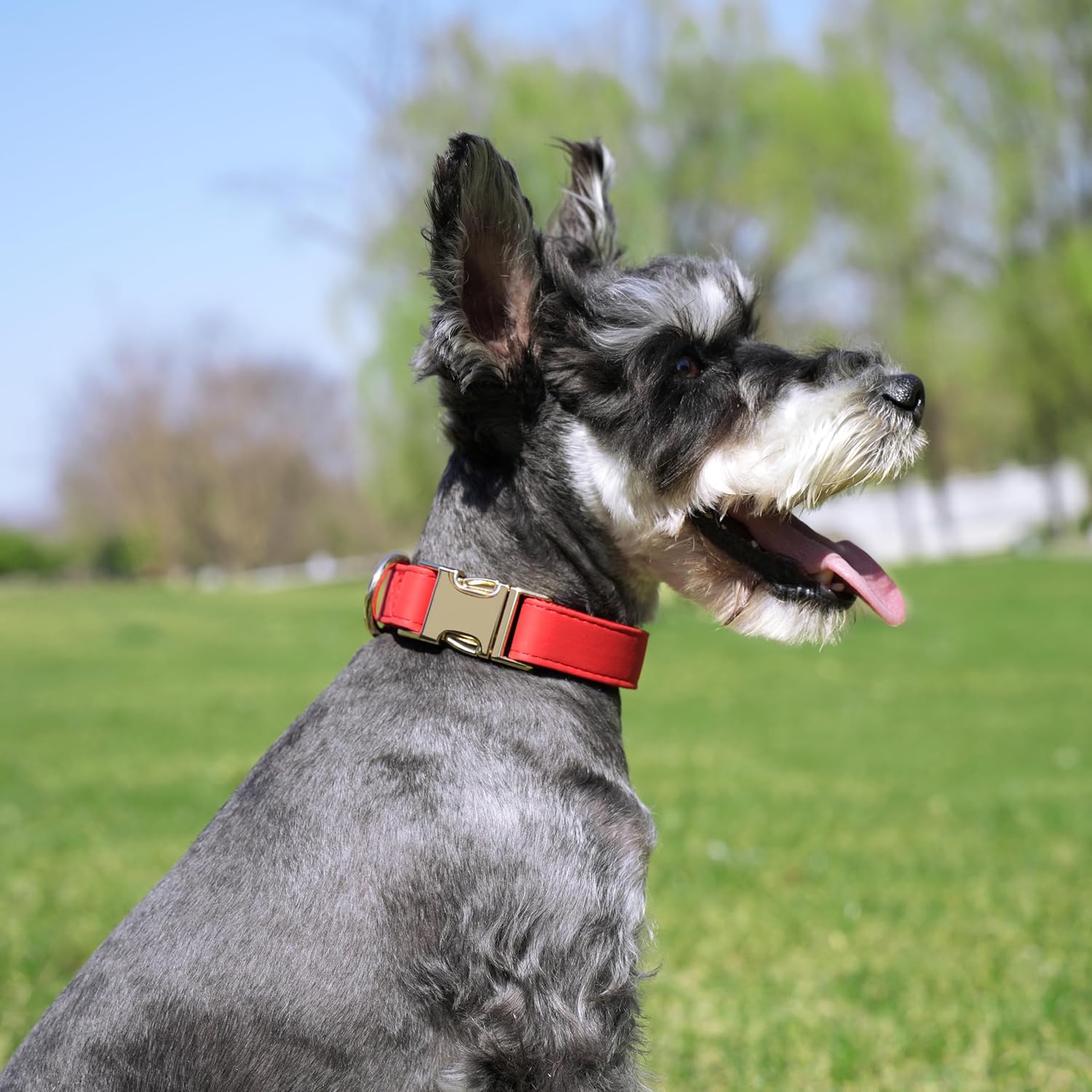 PET ARTIST Soft PU Leather Dog Collar, Bright & Classic Red Dog Collar with Quick Release Rose Metal Buckle, Adjustable Nylon Padded Durable Pet Collars for Small Dogs Girl, Neck Fit 9-14"