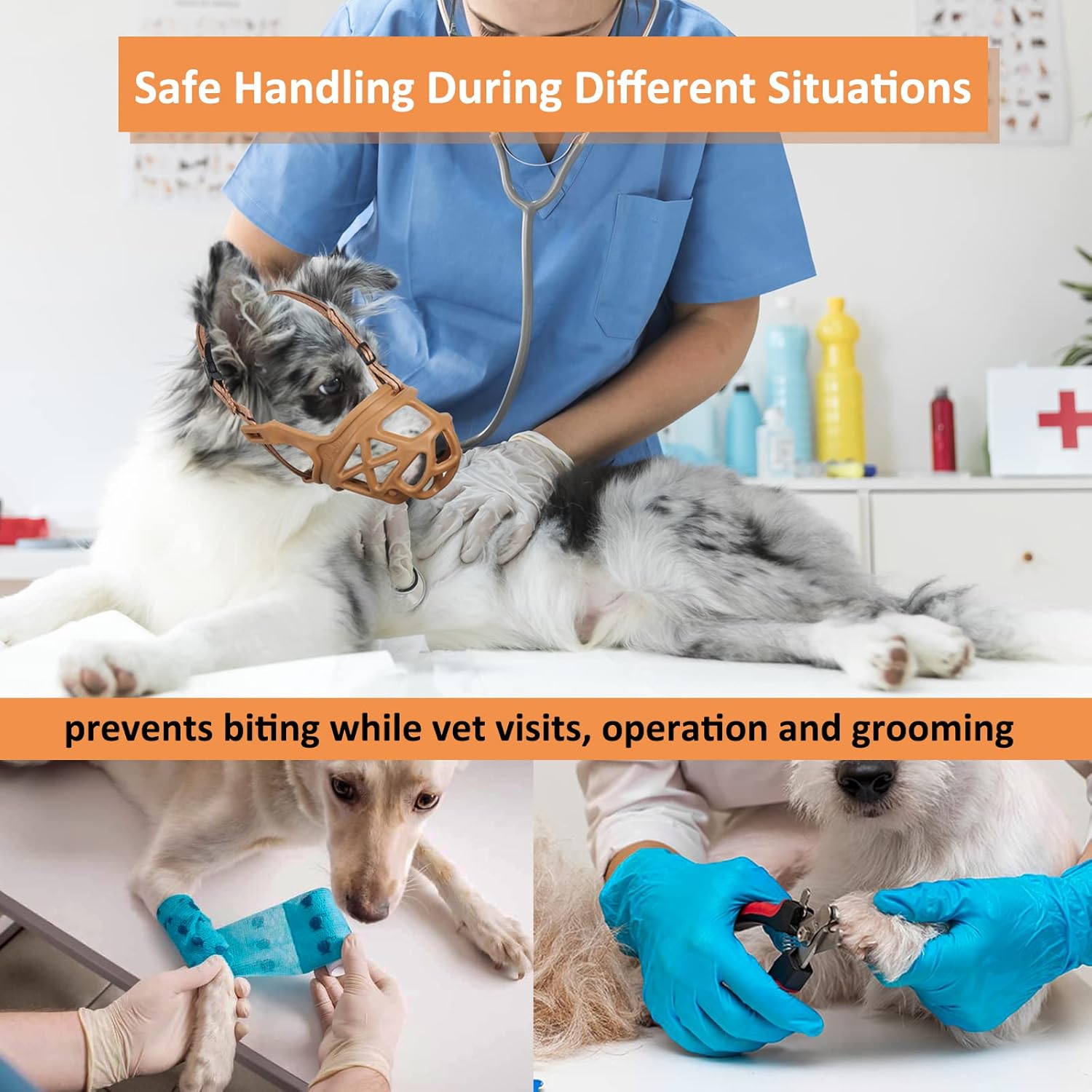 - The Only Muzzle You Need: Say goodbye to your old muzzle. The BARKLESS practical muzzle has features you need to prevent your dog from nipping, destroying, fighting and digging and eating everything while the basket-style design gives all-around mouth protection allowing your pet unrestricted drinking and panting. This muzzle for dogs make it the ideal choice for reactive dogsβ daily walks, occasional use, dog park socialization, grooming, vet visits, training, traveling, and walking