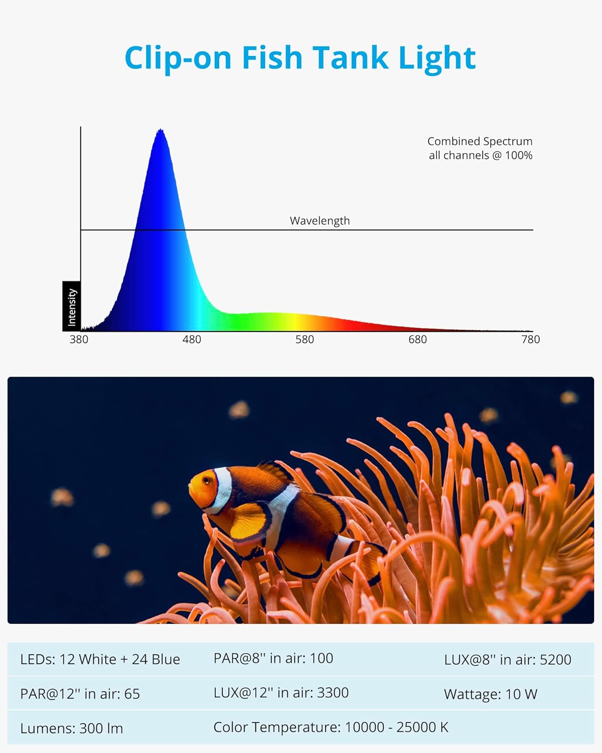 - Ideal balance of blue and white LEDs brings out optimal colors for your fish and produces amazing shimmers for your aquarium