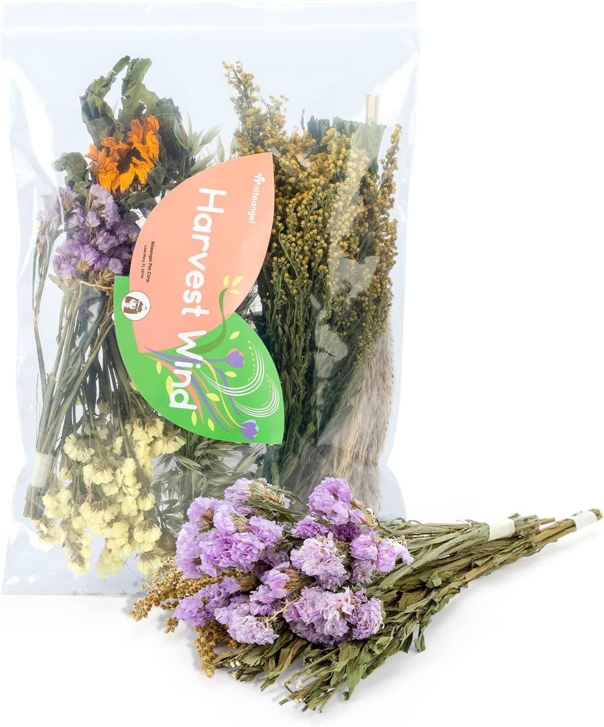 - Safe Materials & More Experience: Capacity: 3.5 OZ(ca. 100g). We are always want to find safe and happy stuff for our pets, these dry varieties have been repeatedly researched by pet experts to pick out the safe flowers that children love, such as purple Myosotis, Reed, Sunflower, wild Oat and etc. Not only can decorate your hamster's home, but also provide more different textures to enrich their chewing experience and be a new hamster toy.