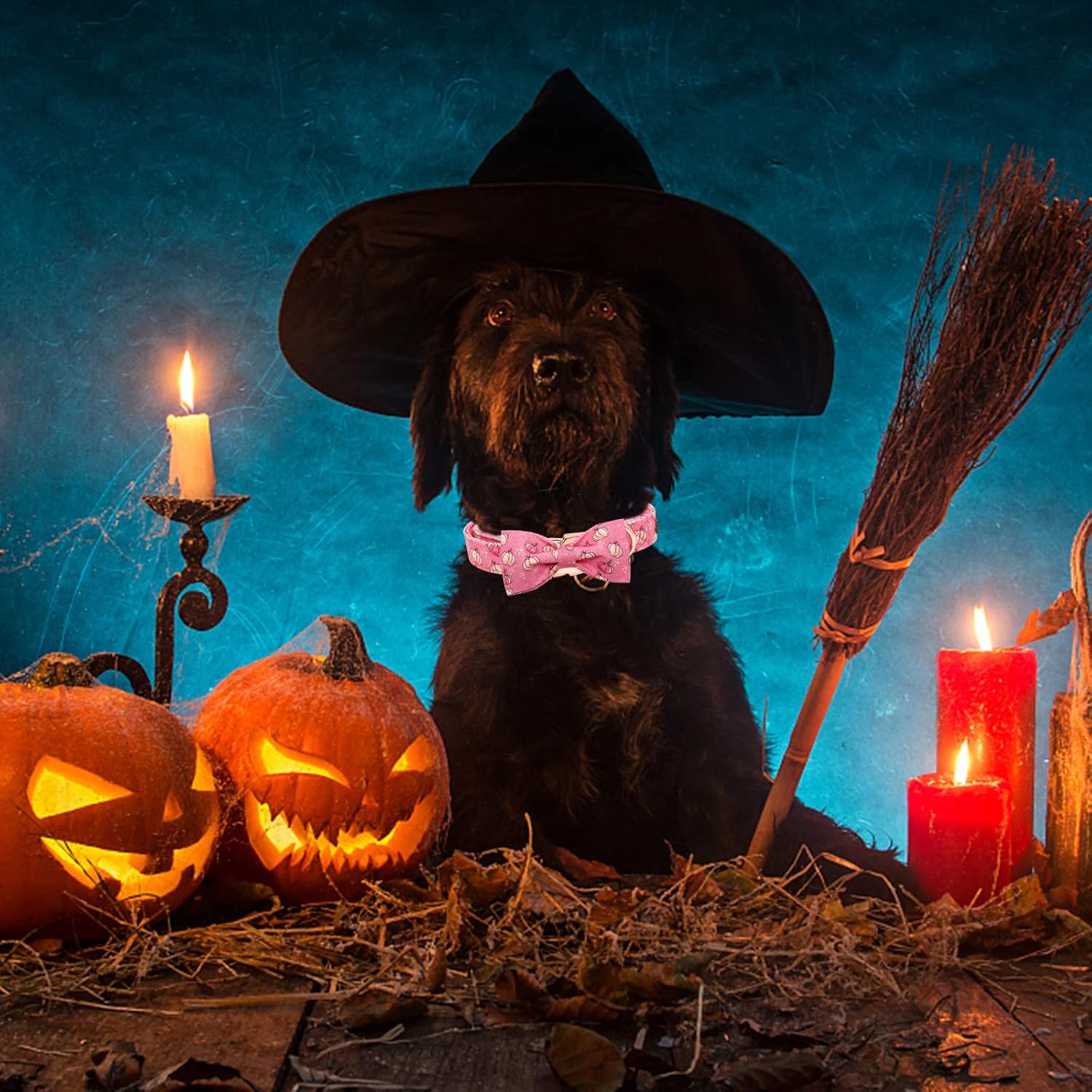Elegant Little Tail Dog Collar with Bow, Adjustable Halloween Pumpkin Bowtie Collar for Small to Large Dogs