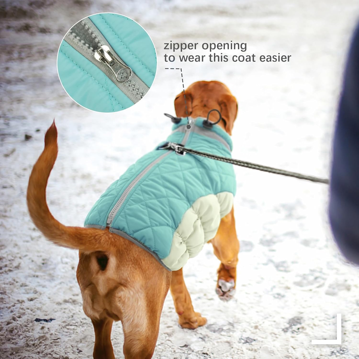 FUAMEY Dog Coat for Large Dogs,Waterproof Dog Winter Jacket with Harness Built in Puppy Cold Weather Coats Reflective Pet Vest with Zipper Warm Fleece Dogs Snowsuit Windproof Mint Green L