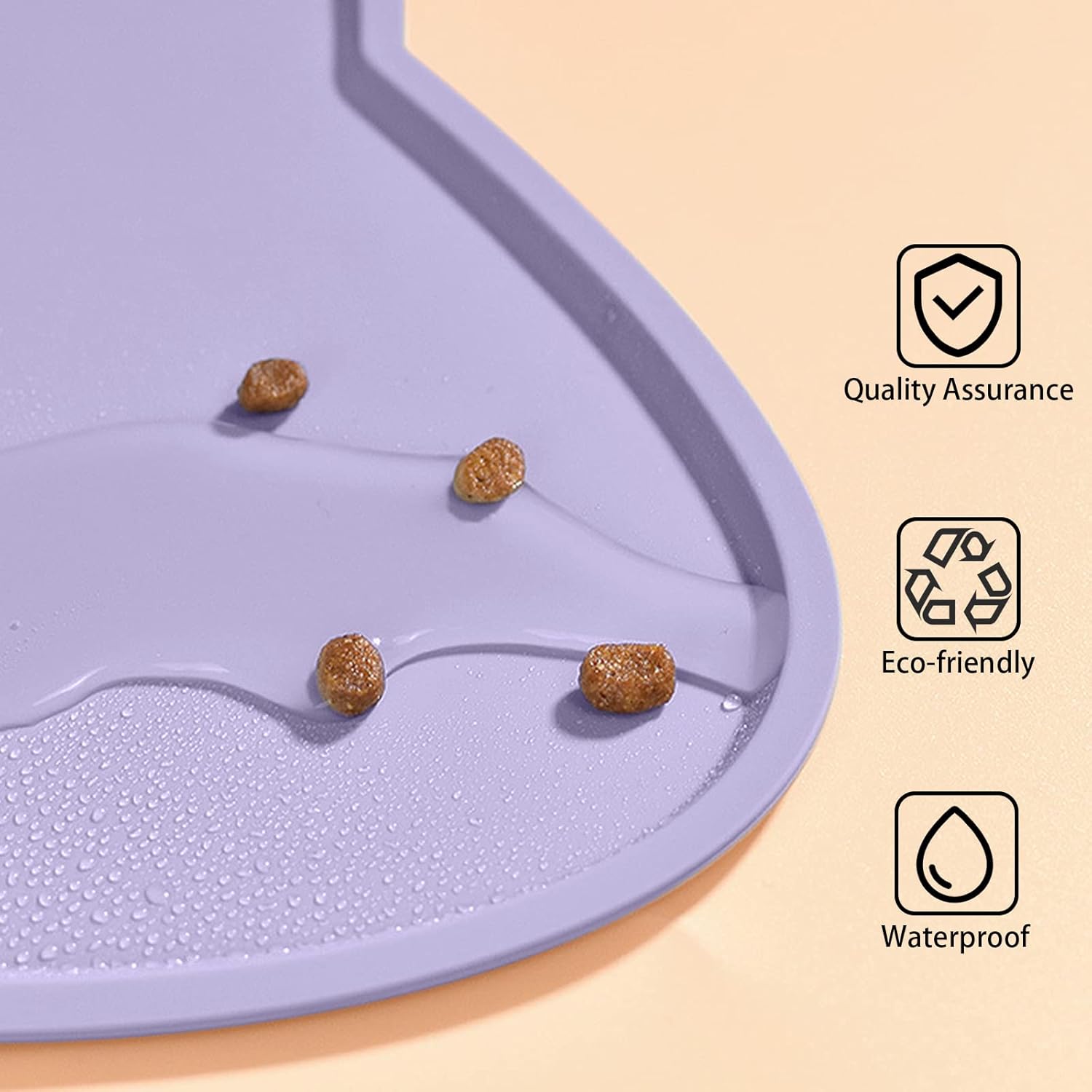 Cat Food Mat, Silicone Pet Feeding Mat for Floor Non-Slip Waterproof Dog Water Bowl Tray Cushion (20" x 12", Periwinkle Blue)