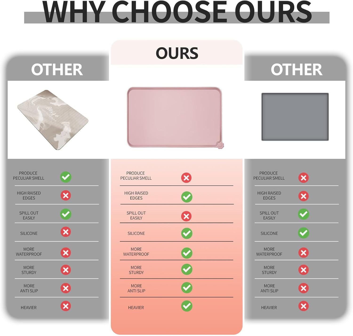 - Anti-slip design: our non-slip pet feeding mat ensures stability for your pet's bowl, preventing any water stains or spills on the floor. Enjoy peace of mind when feeding your pet, knowing that their food stays in place